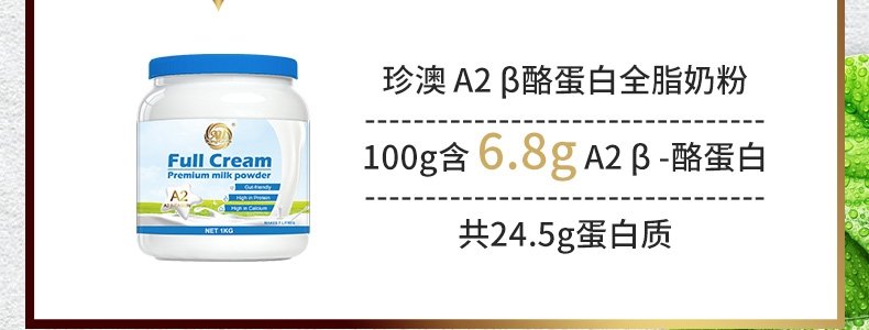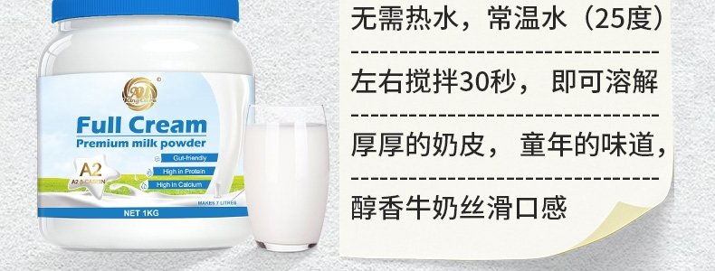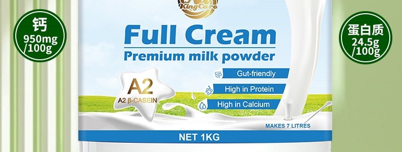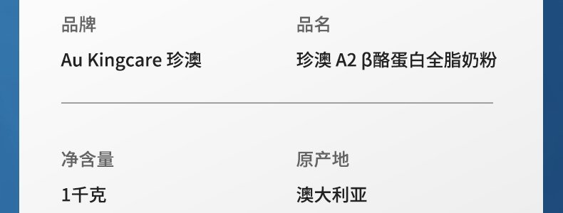 商品名称:澳大利亚 珍澳(Au Kingcare)A2-β-酪蛋白全脂奶粉 1kg