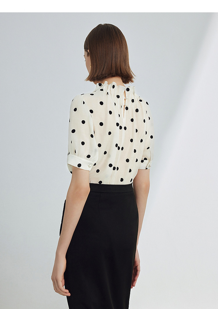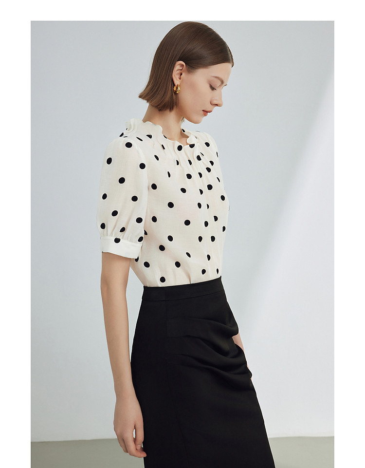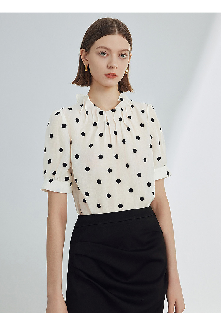 复古法式波点设计感短袖上衣衬衣女夏款通勤气质衬衫 193369