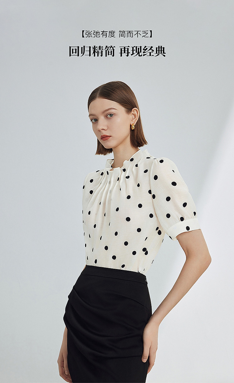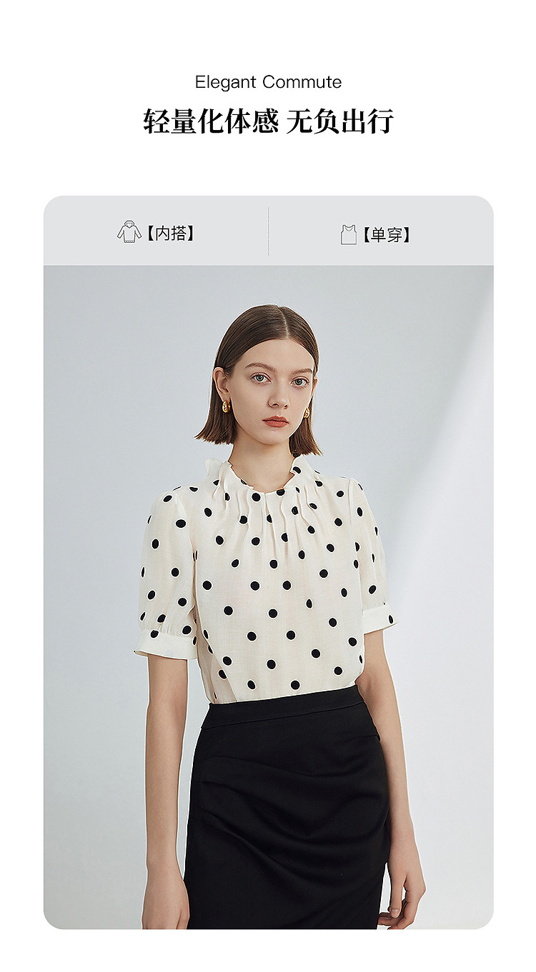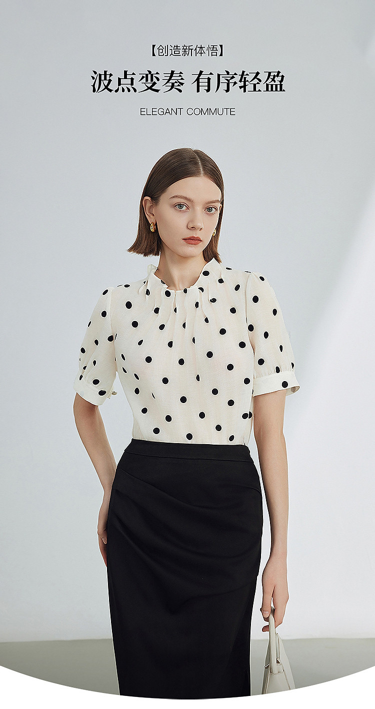 商品名称:复古法式波点设计感短袖上衣衬衣女夏款通勤气质衬衫 193369