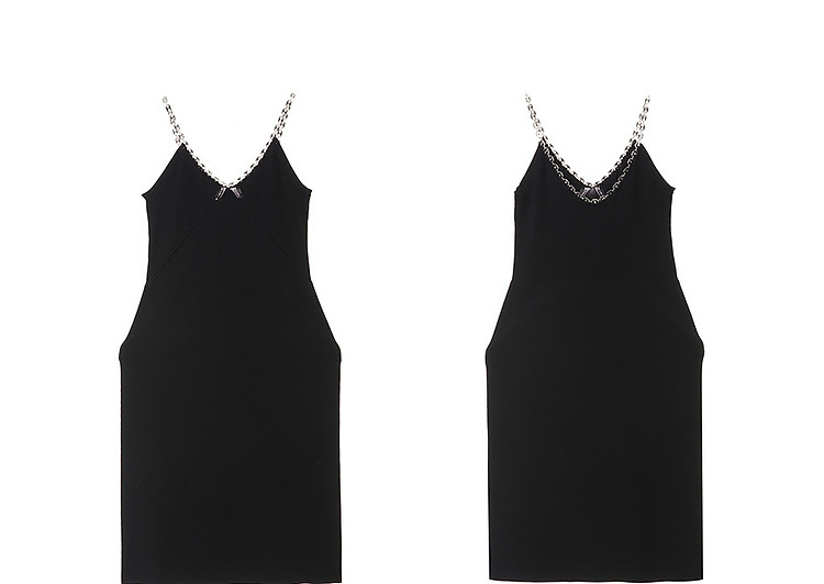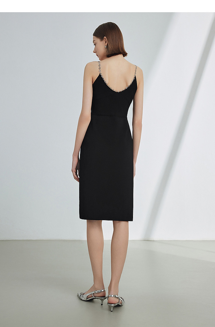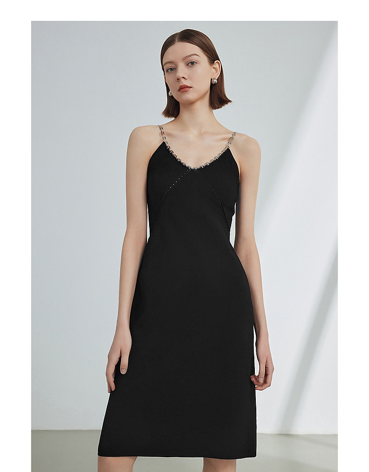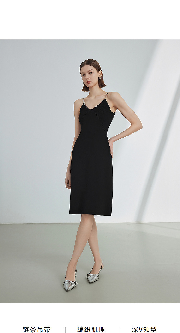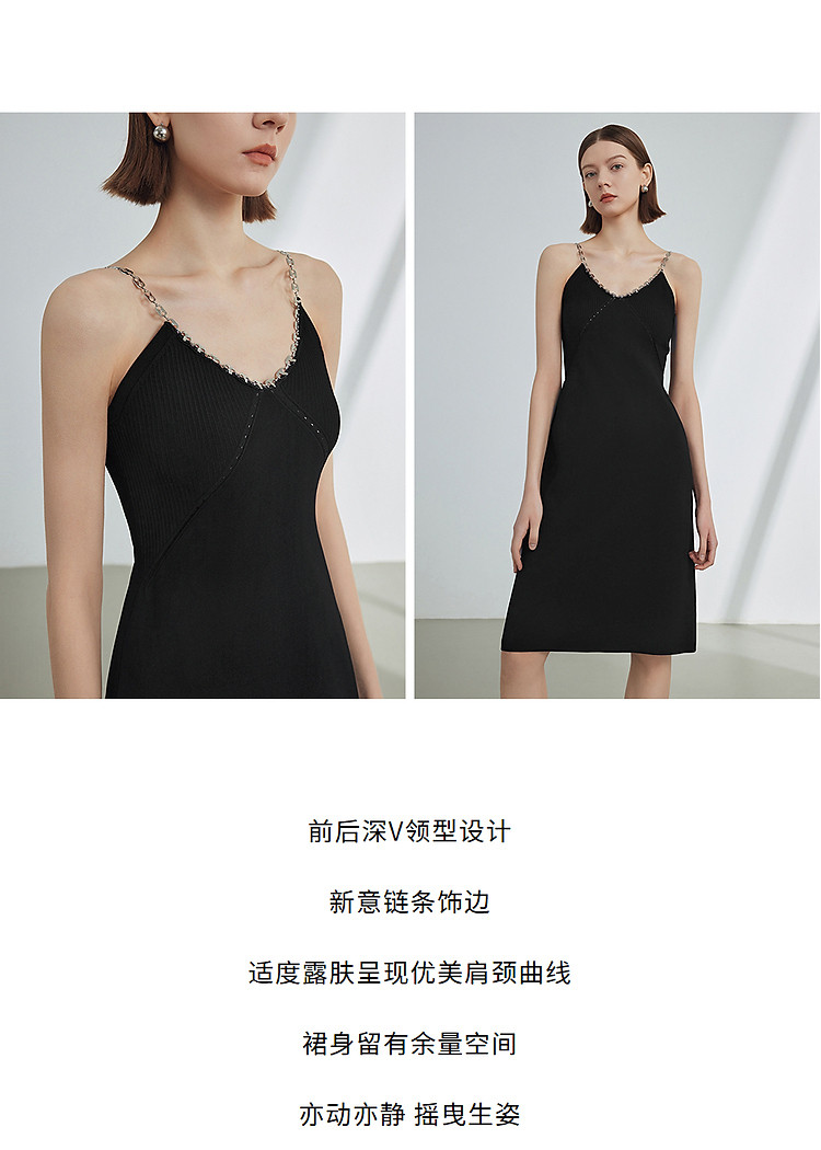 商品名称:吊带设计感收腰显瘦气质别致小黑裙夏款针织连衣裙 263193