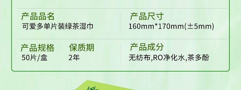 商品名称:可爱多 绿茶湿巾纸 随身 50片/盒*4盒