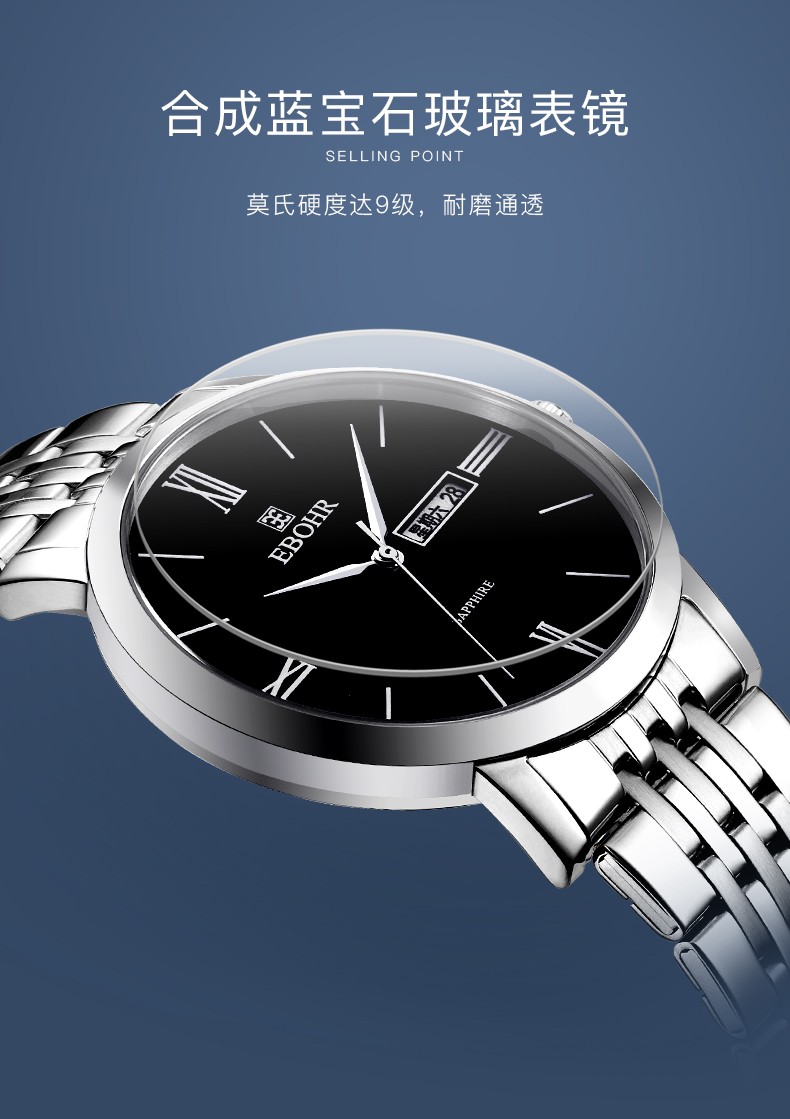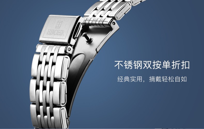 依波(EBOHR)大师系列情侣石英表 经典百搭防水钢带简约时尚男女士手表
