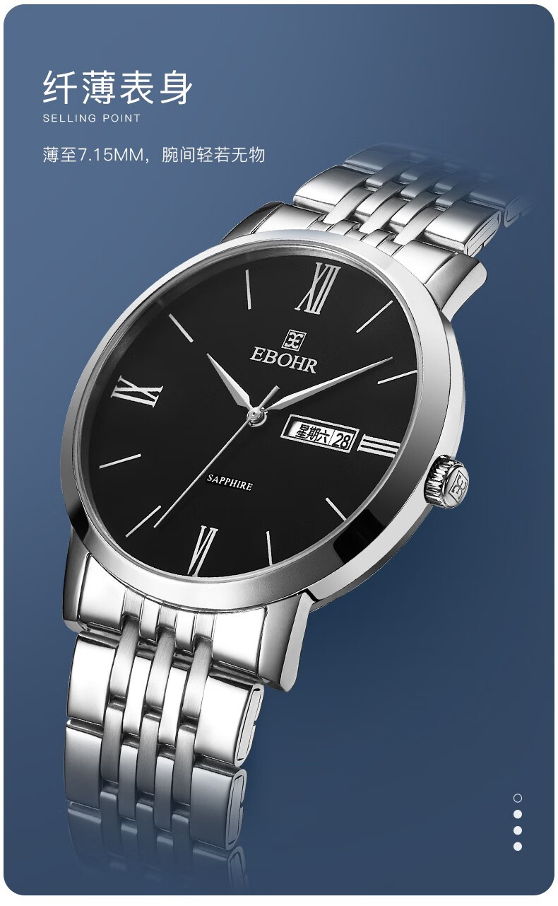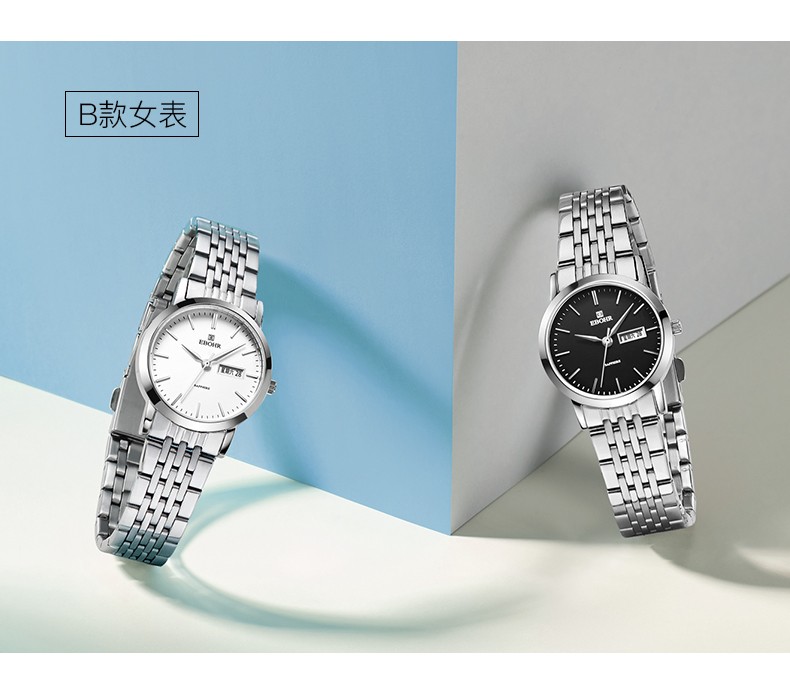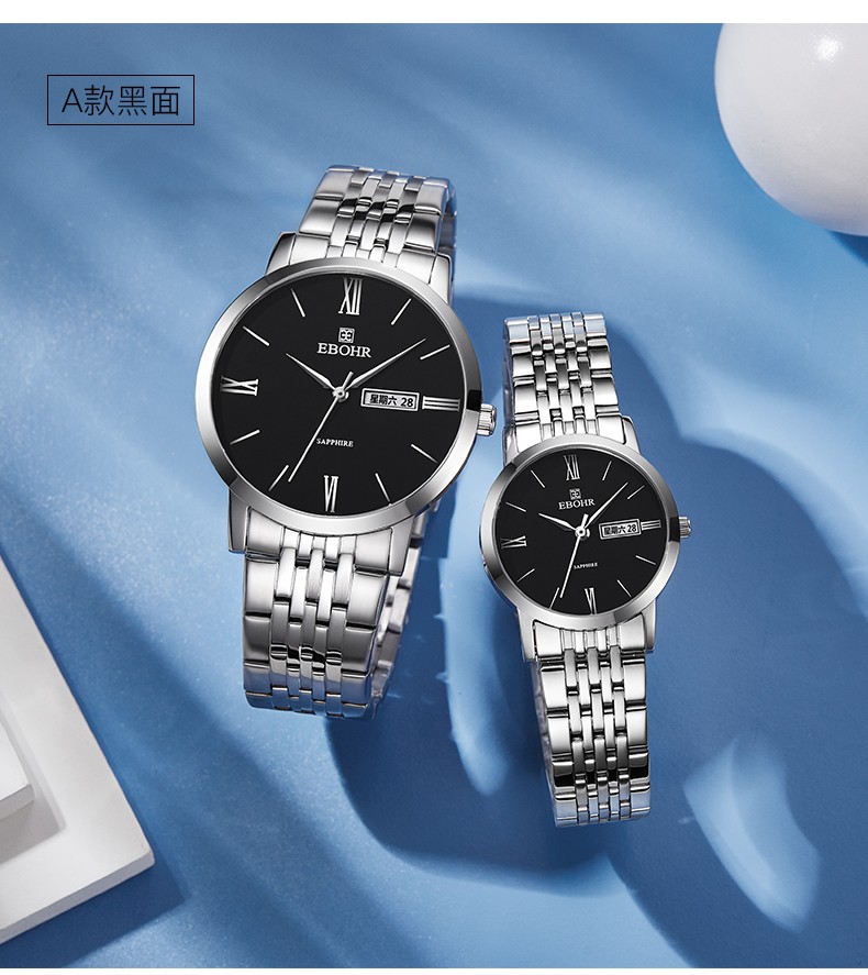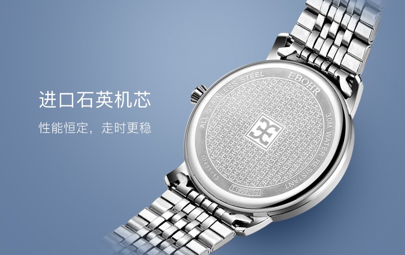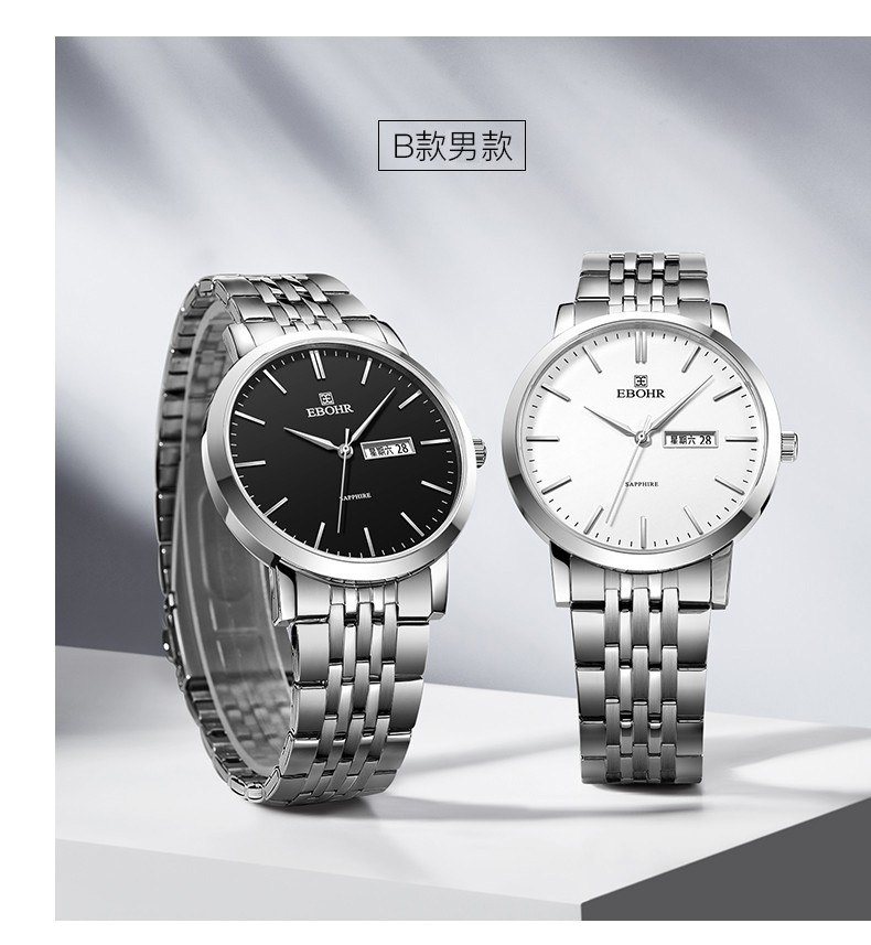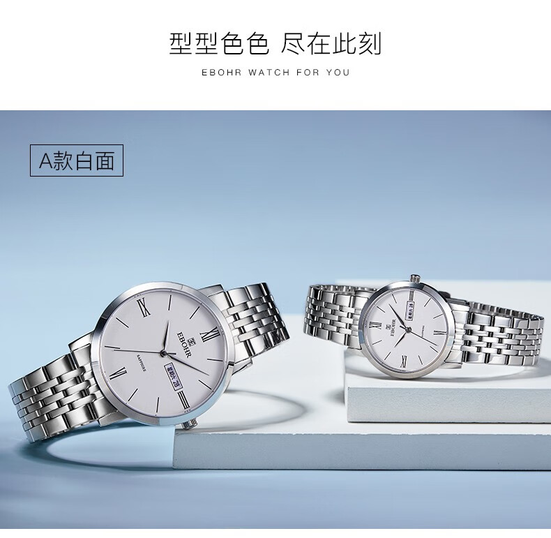 商品名称:依波(EBOHR)大师系列情侣石英表 经典百搭防水钢带简约时尚男女士手表
