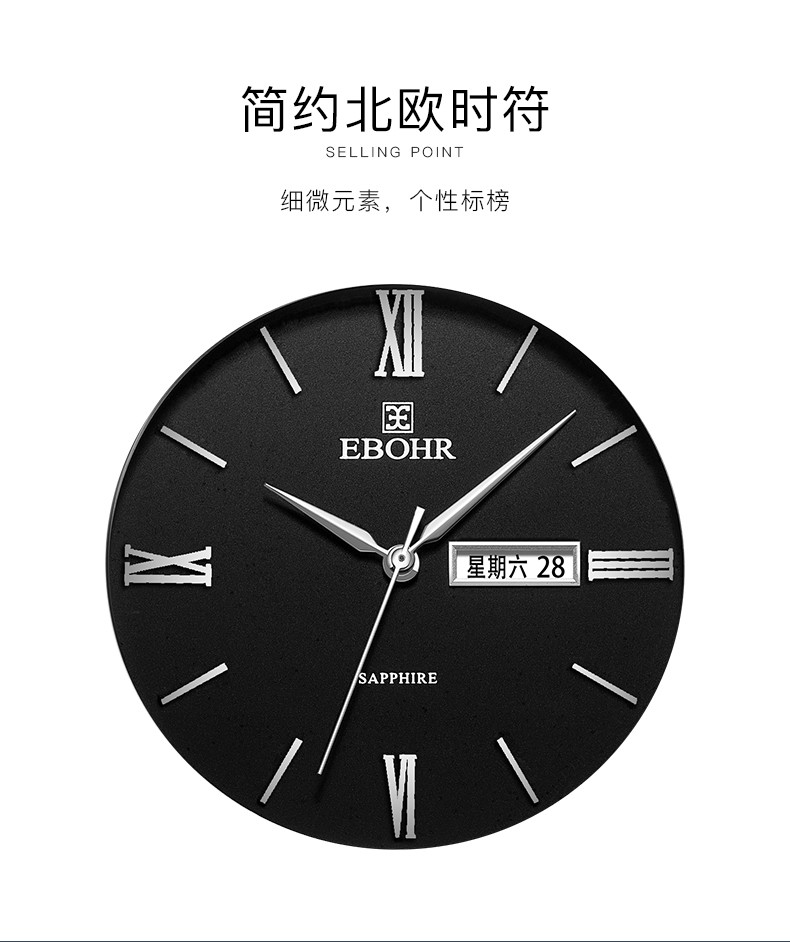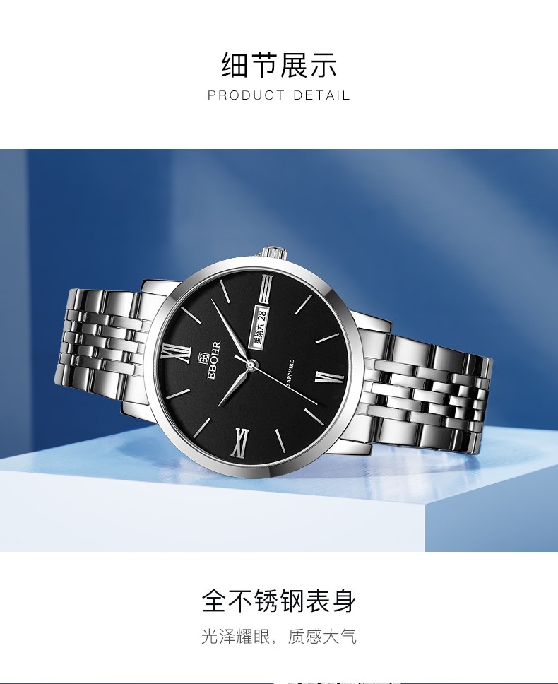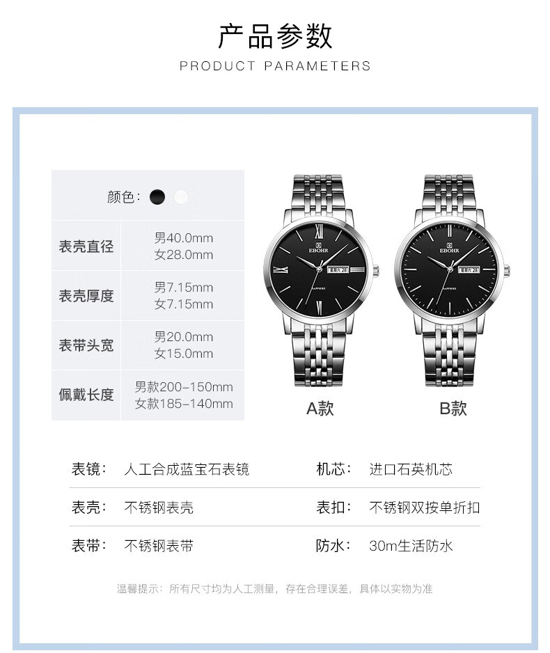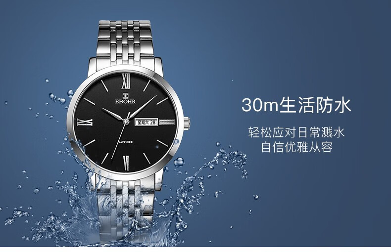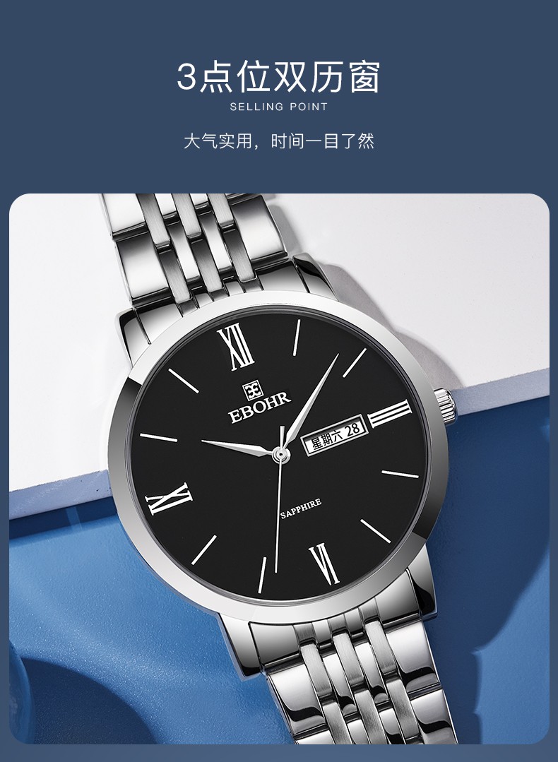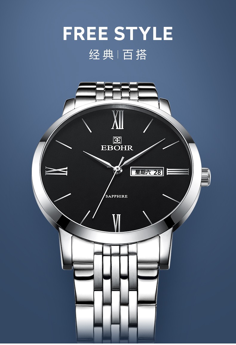 商品名称:依波(EBOHR)大师系列情侣石英表 经典百搭防水钢带简约时尚男女士手表