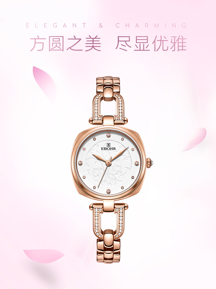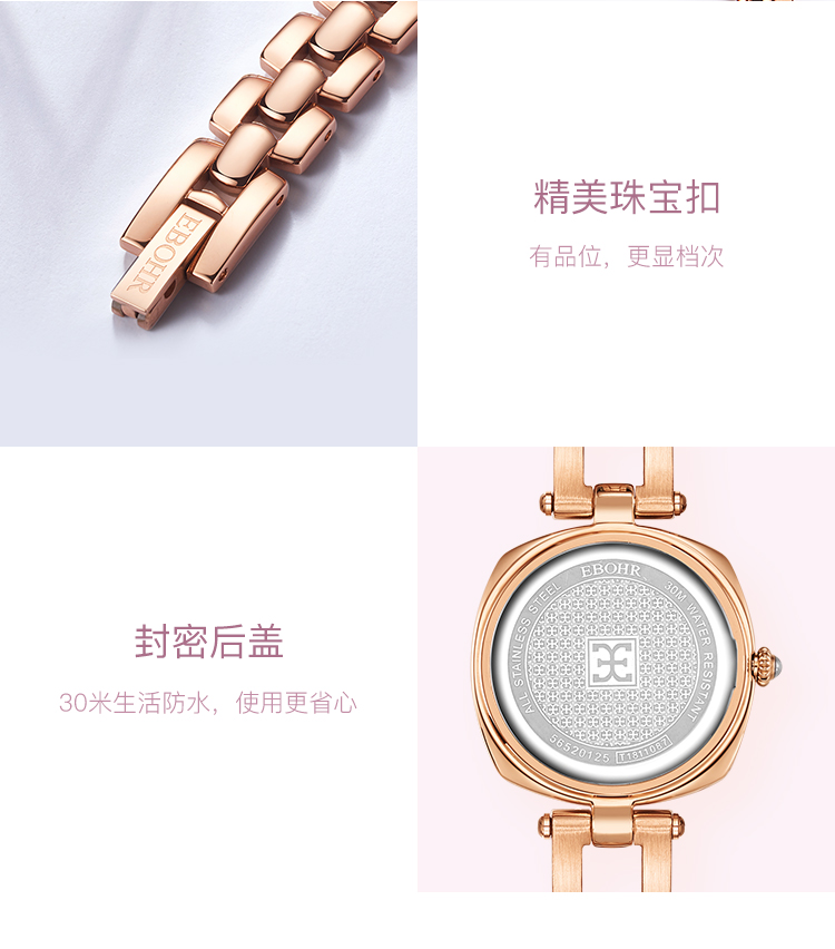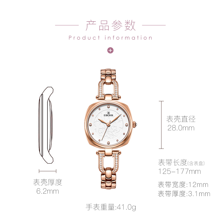 商品名称:依波(EBOHR)时尚文艺石英手表女士腕表简约防水钢带表56520125