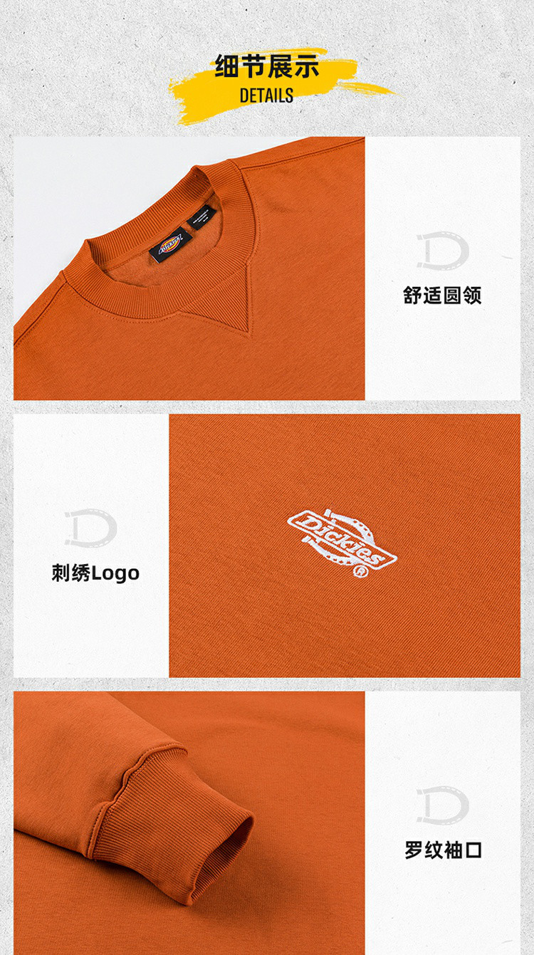 商品名称:Dickies春夏 潮流休闲舒适男女刺绣Logo加绒卫衣 733314