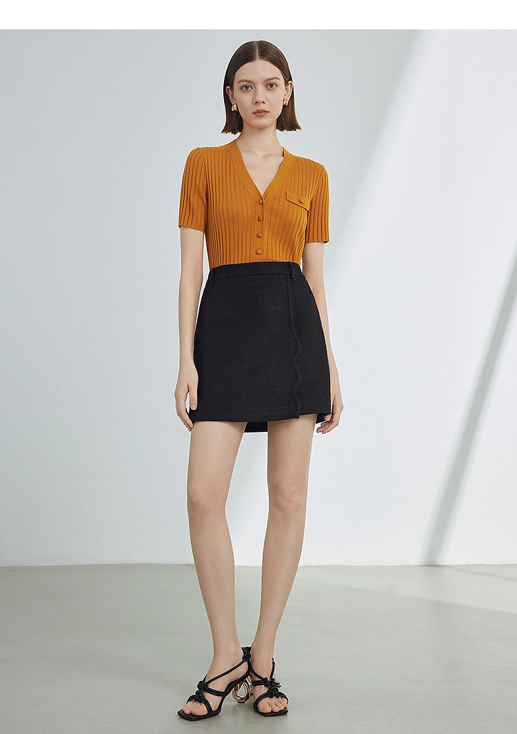 法式小香风复古a字高腰显瘦裙子女夏款短款半身裙 502937