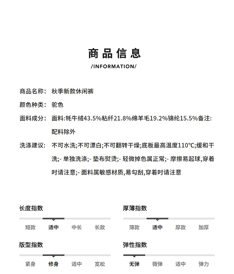商品名称:春季牦牛绒休闲子女高端绵羊毛针织裤朗姿集团 075353