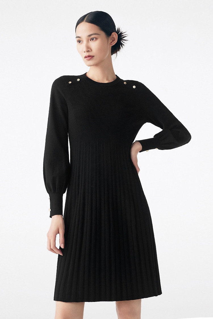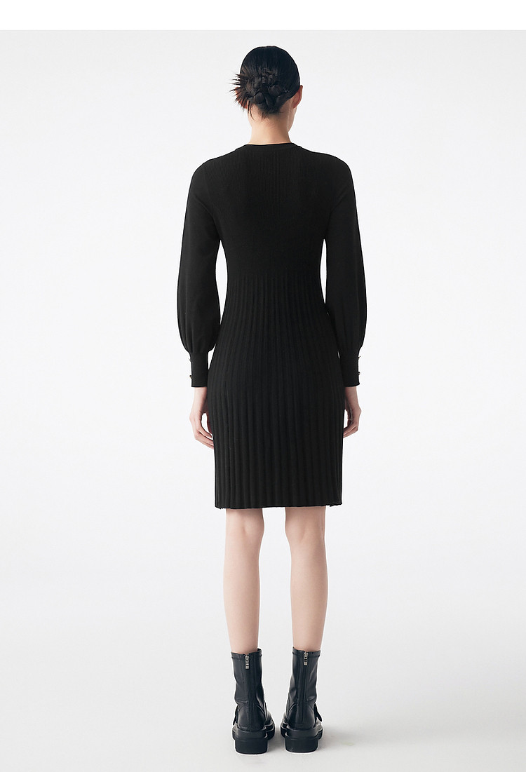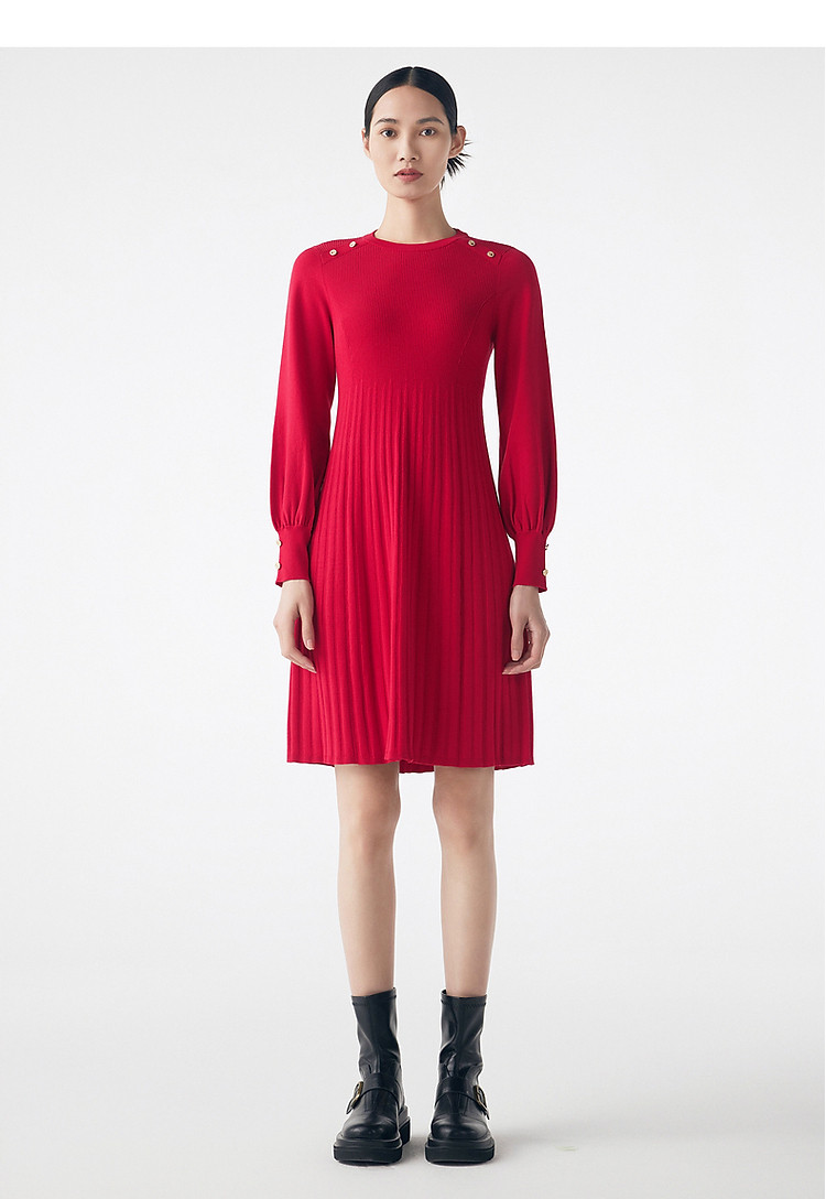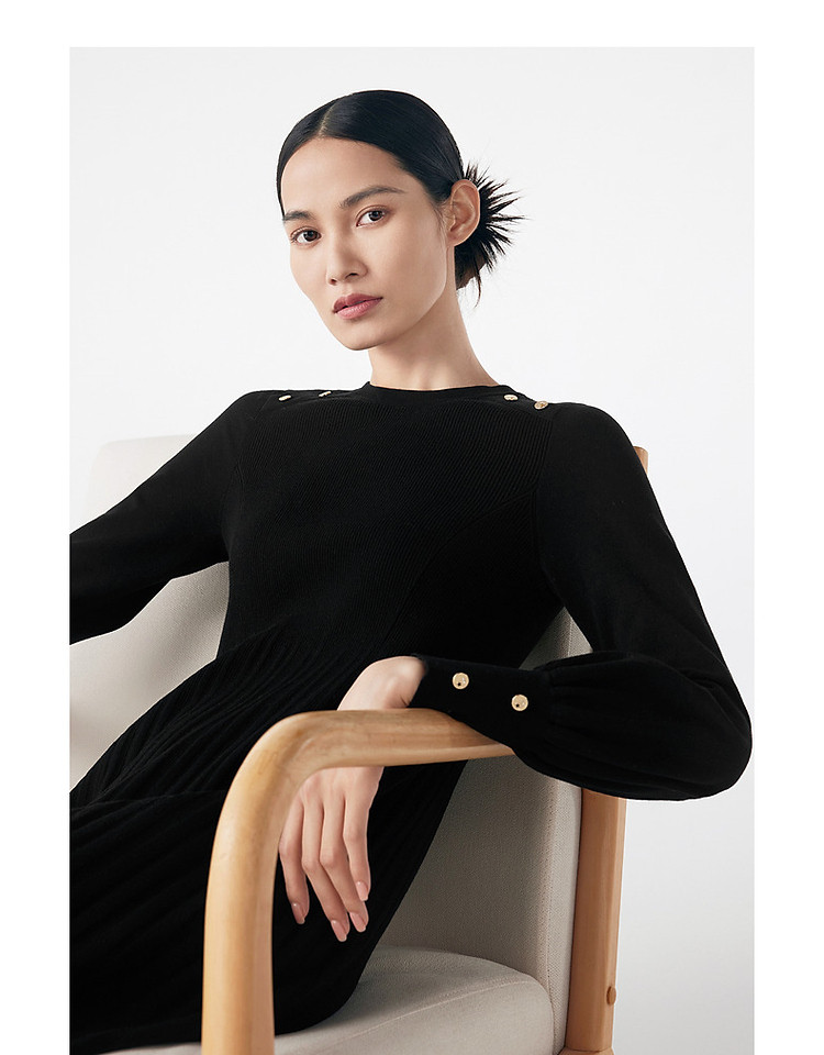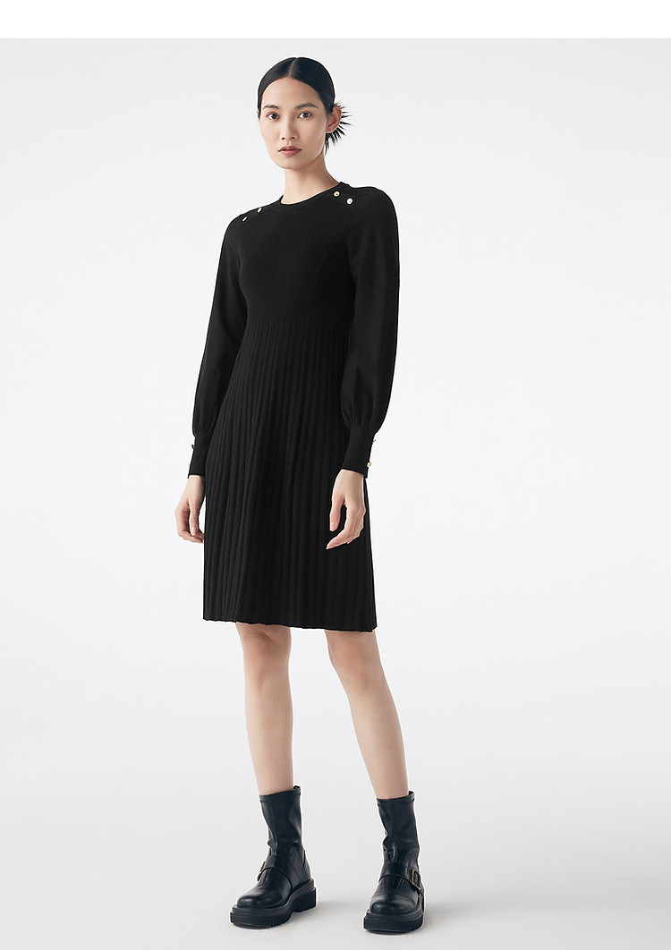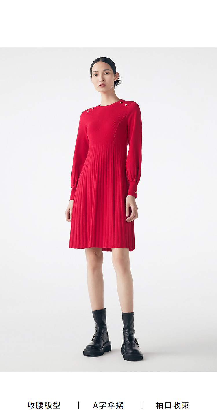 春秋季长袖羊毛针织连衣裙收腰修身垂感法式气质朗姿集团 847257