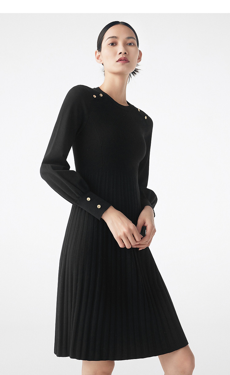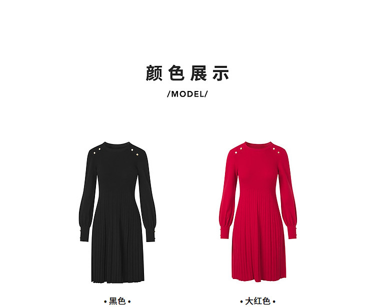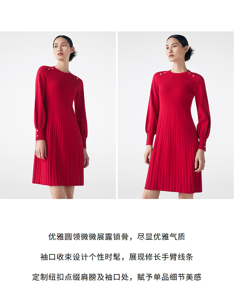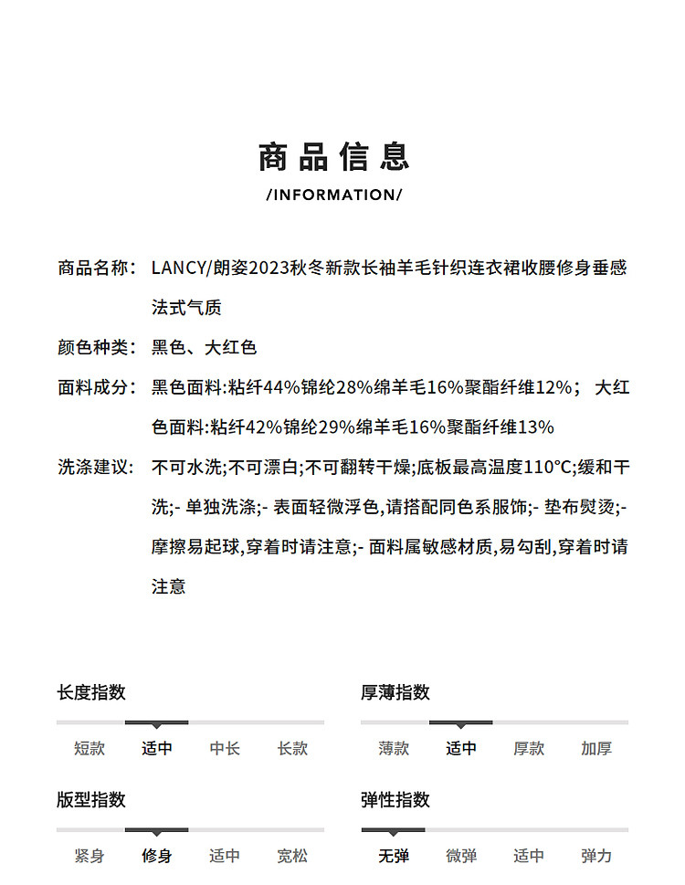 商品名称:春秋季长袖羊毛针织连衣裙收腰修身垂感法式气质朗姿集团 847257