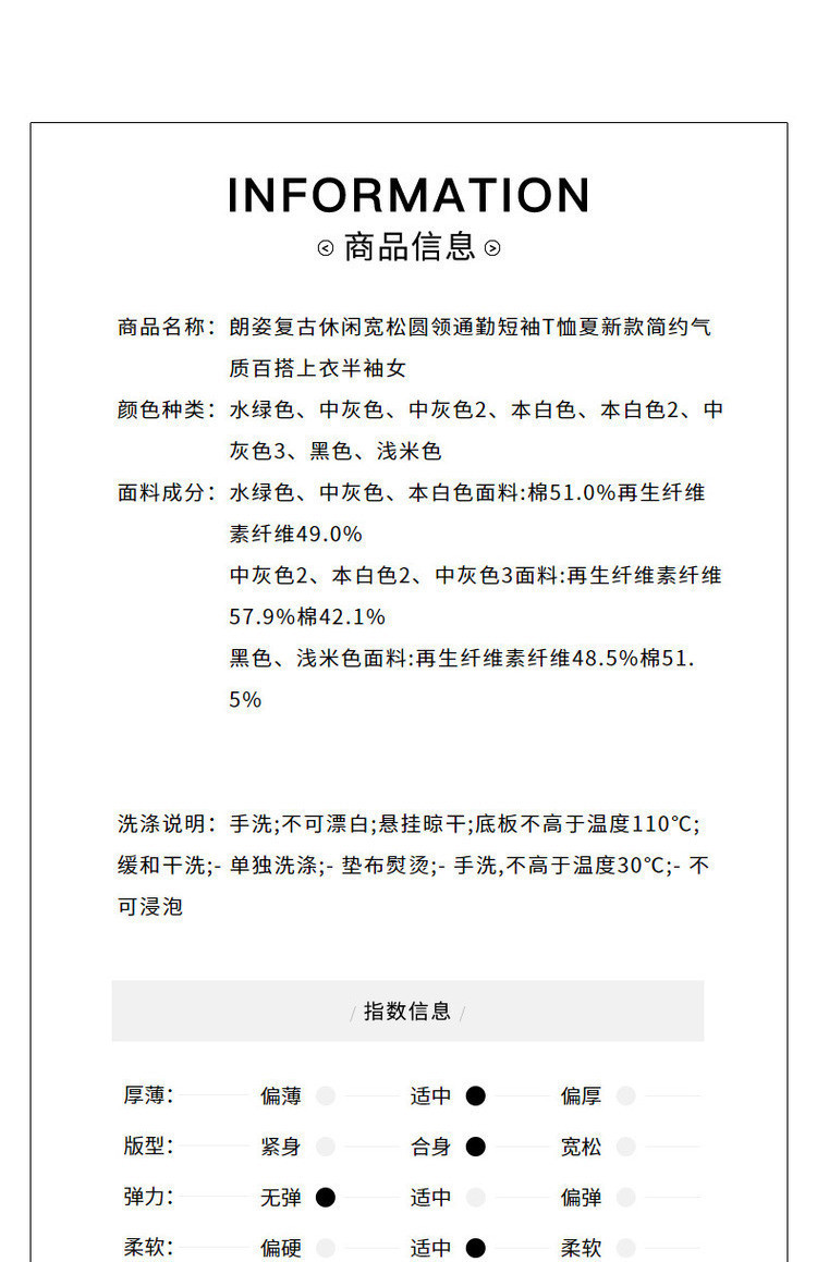 商品名称:复古休闲宽松圆领通勤短袖T恤夏款简约气质百搭上衣半袖女 209753