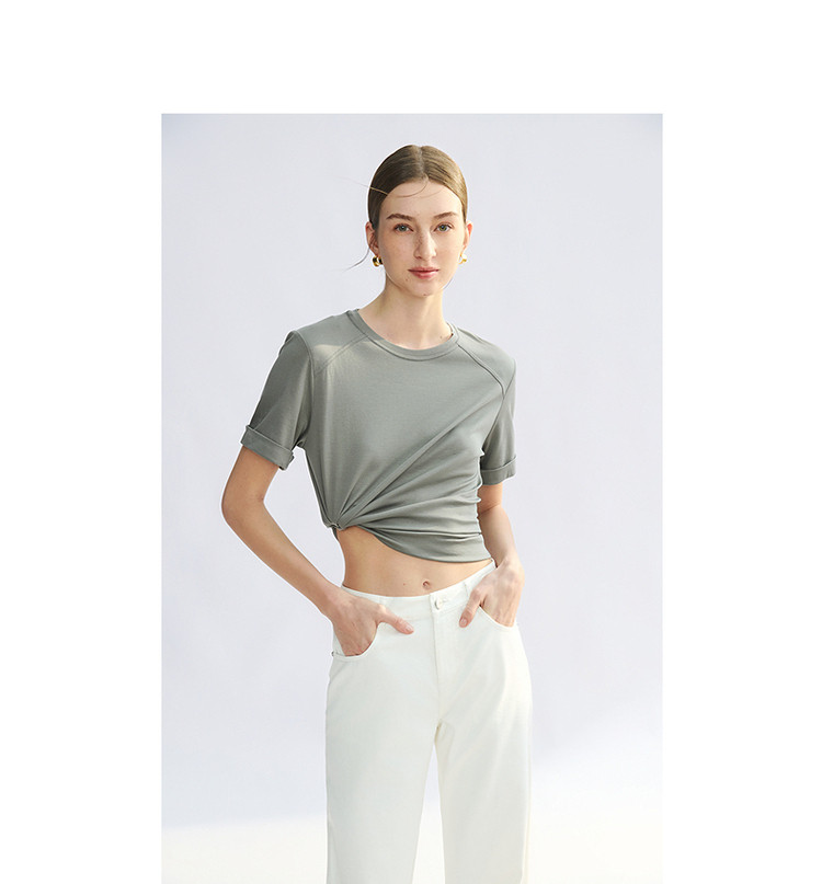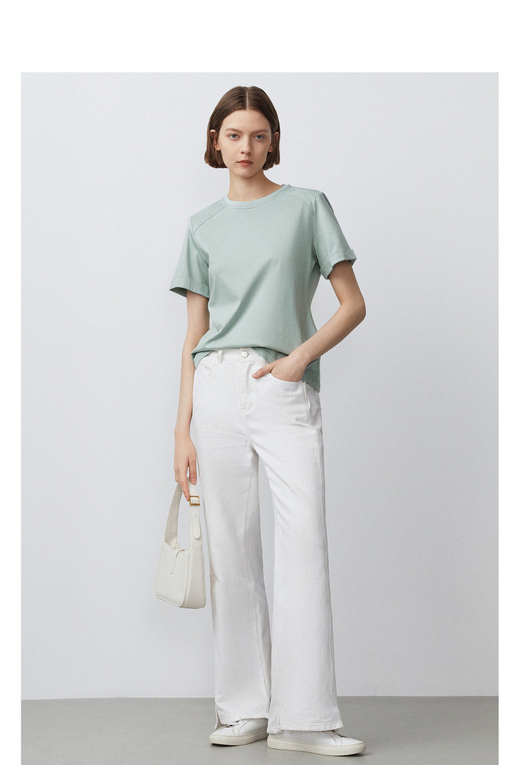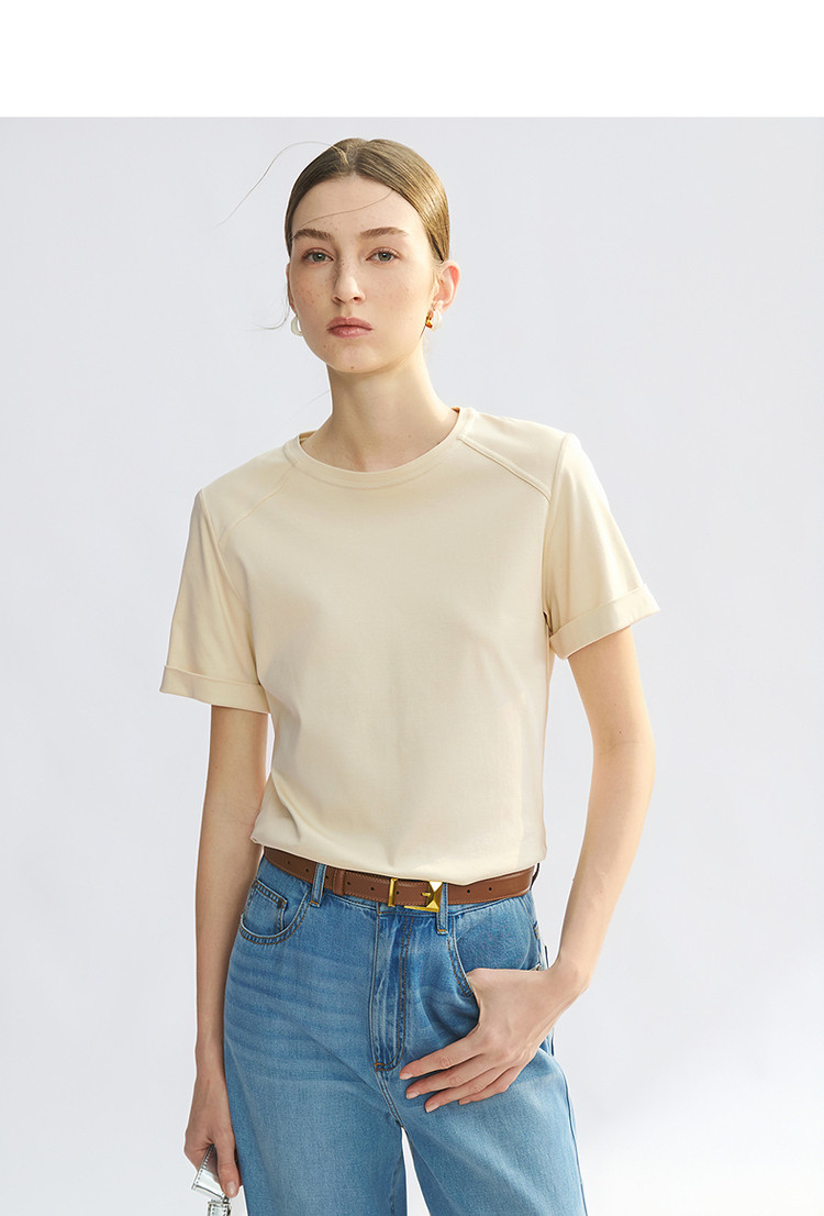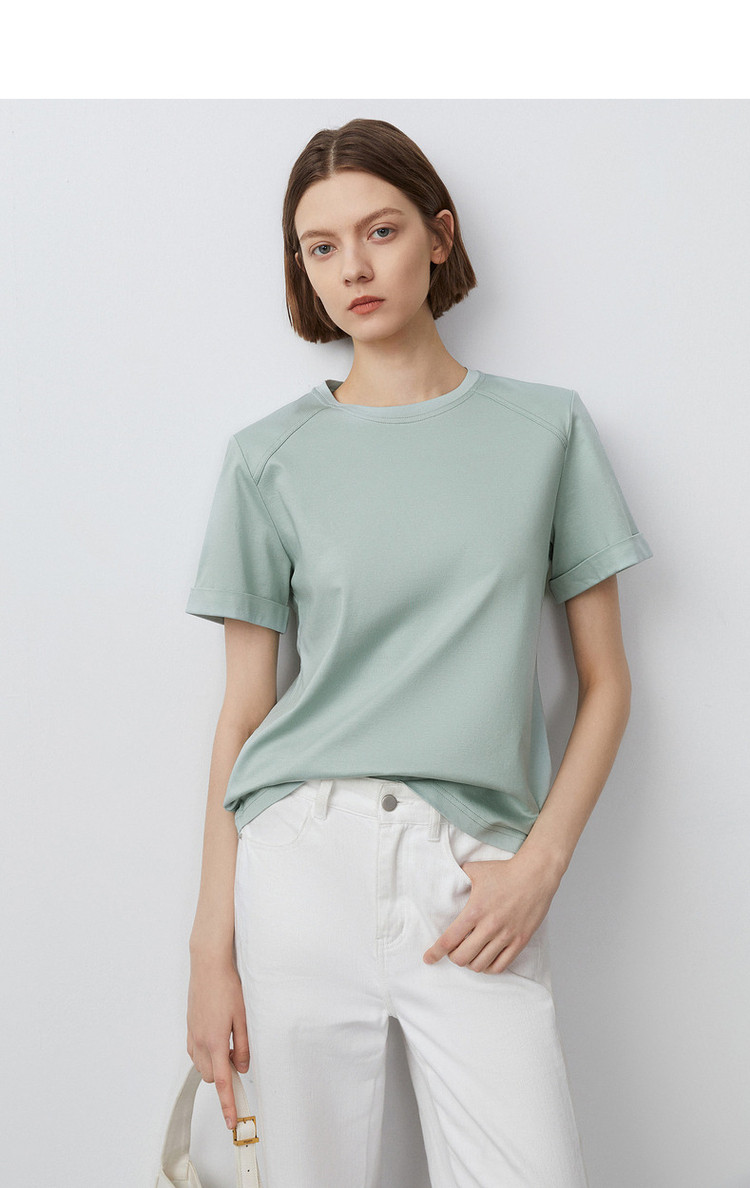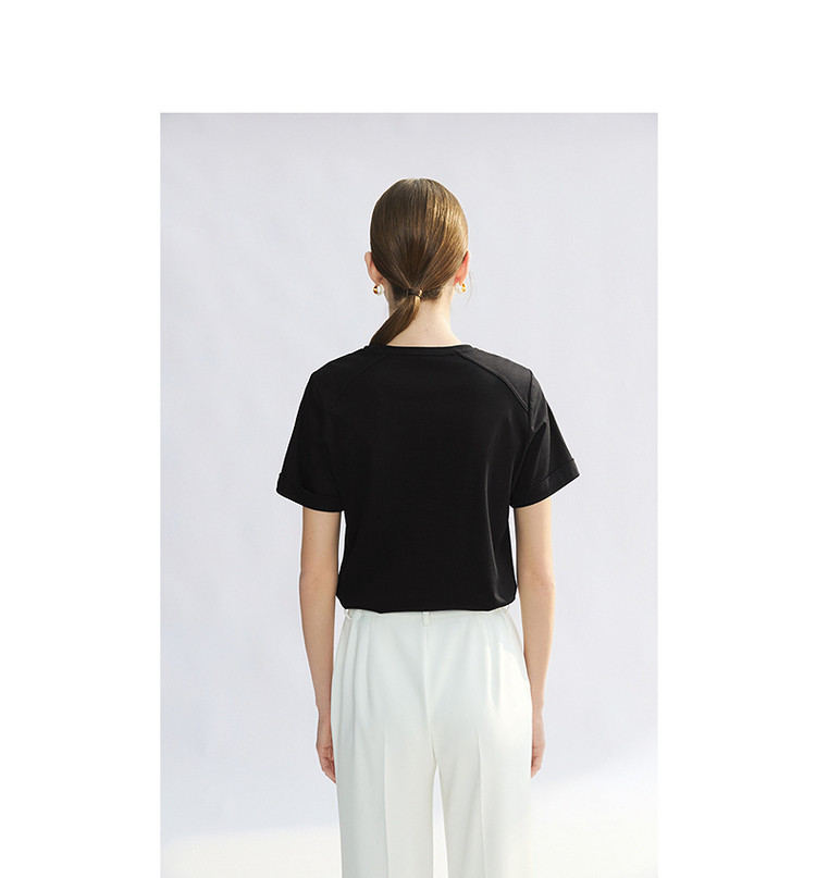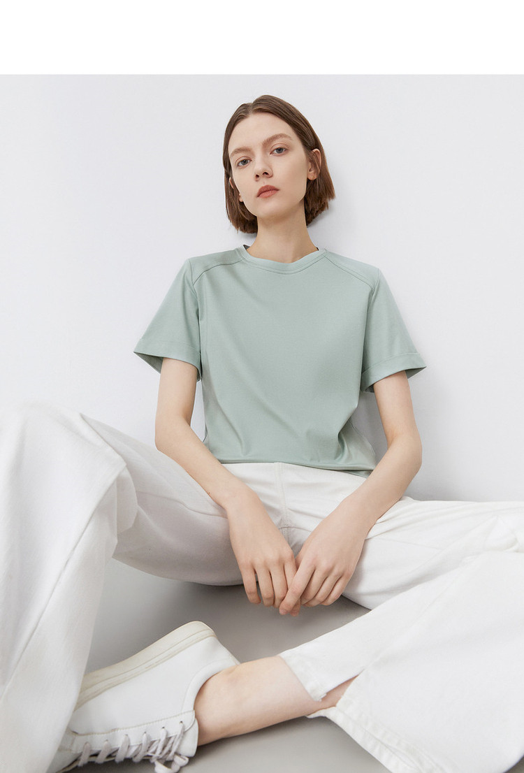 【高弹棉质撞色女式t恤】夏季圆领简约短袖t恤女 991745