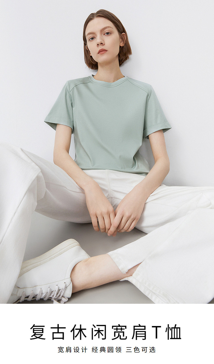 复古休闲宽松圆领通勤短袖T恤夏款简约气质百搭上衣半袖女 209753