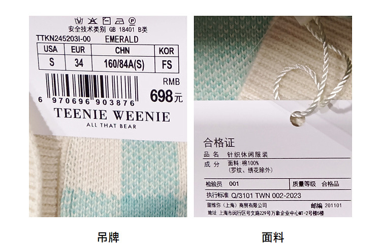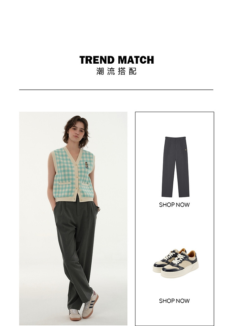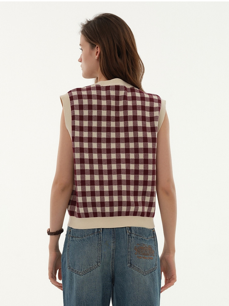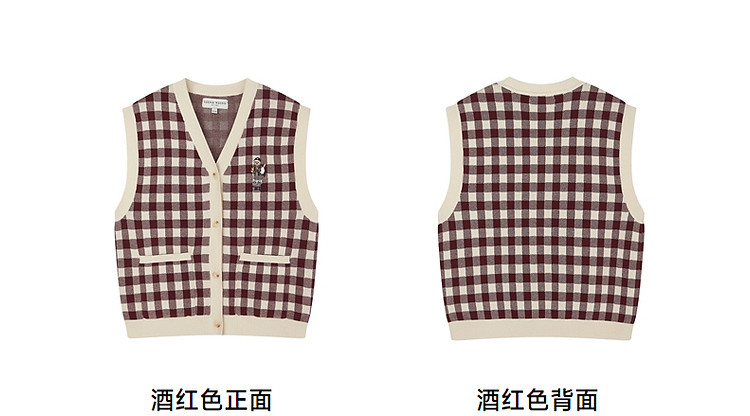 商品名称:小熊多巴胺格纹毛衣开衫马甲背心针织衫 916929