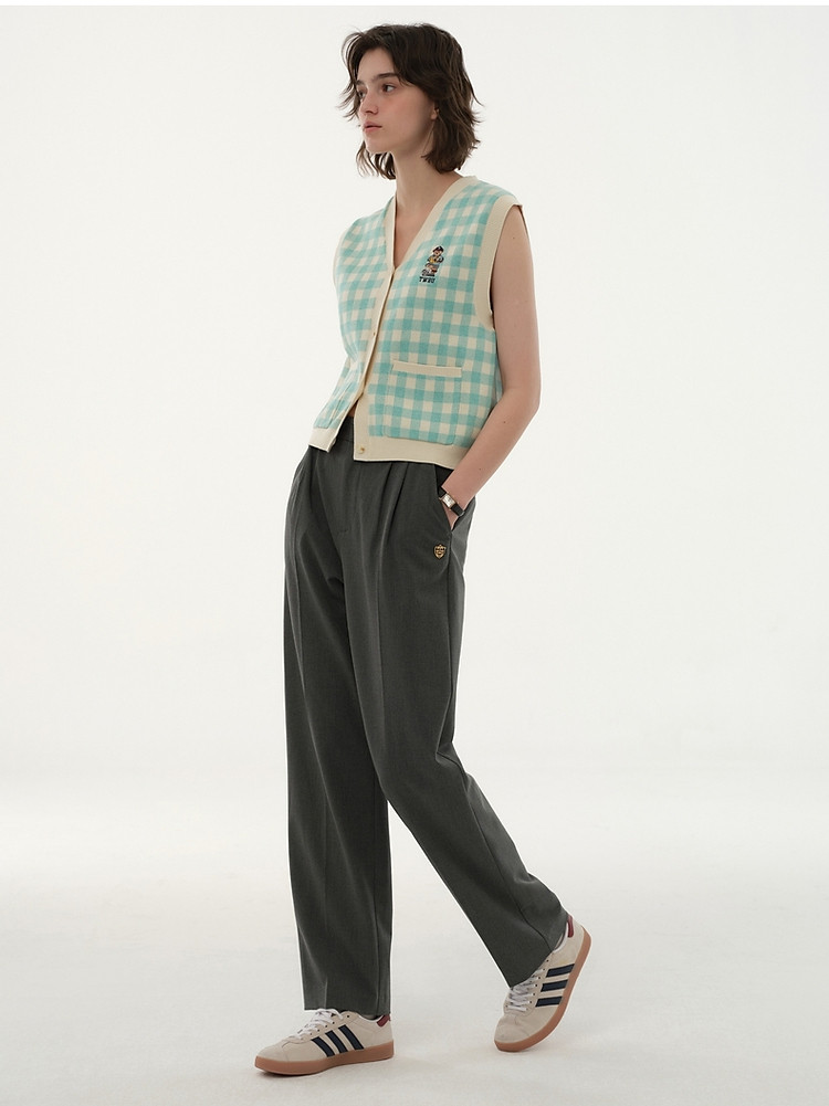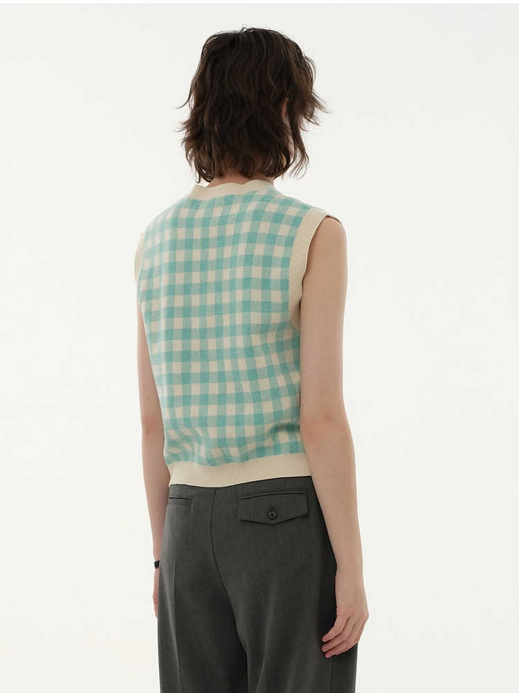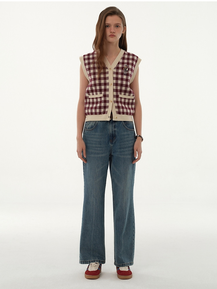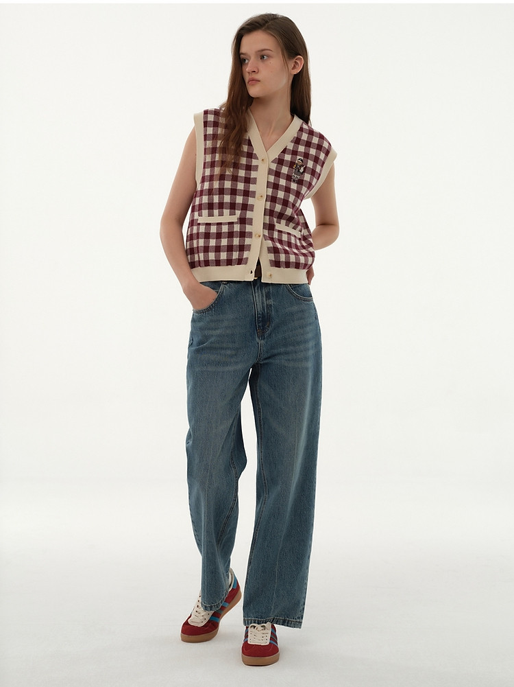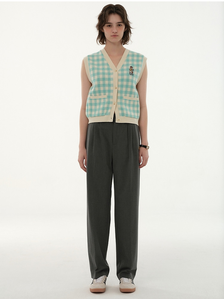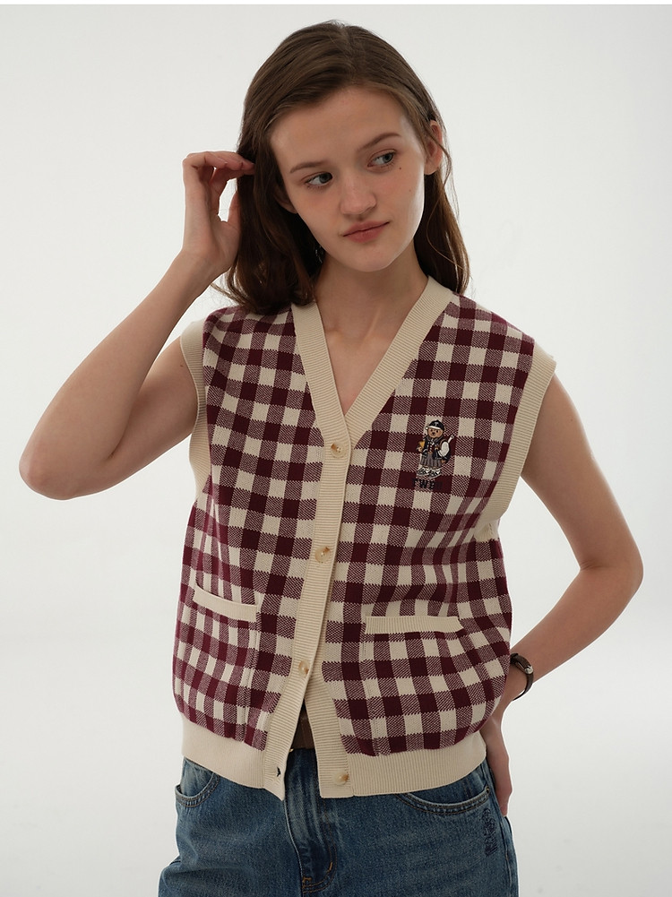 小熊多巴胺格纹毛衣开衫马甲背心针织衫 916929