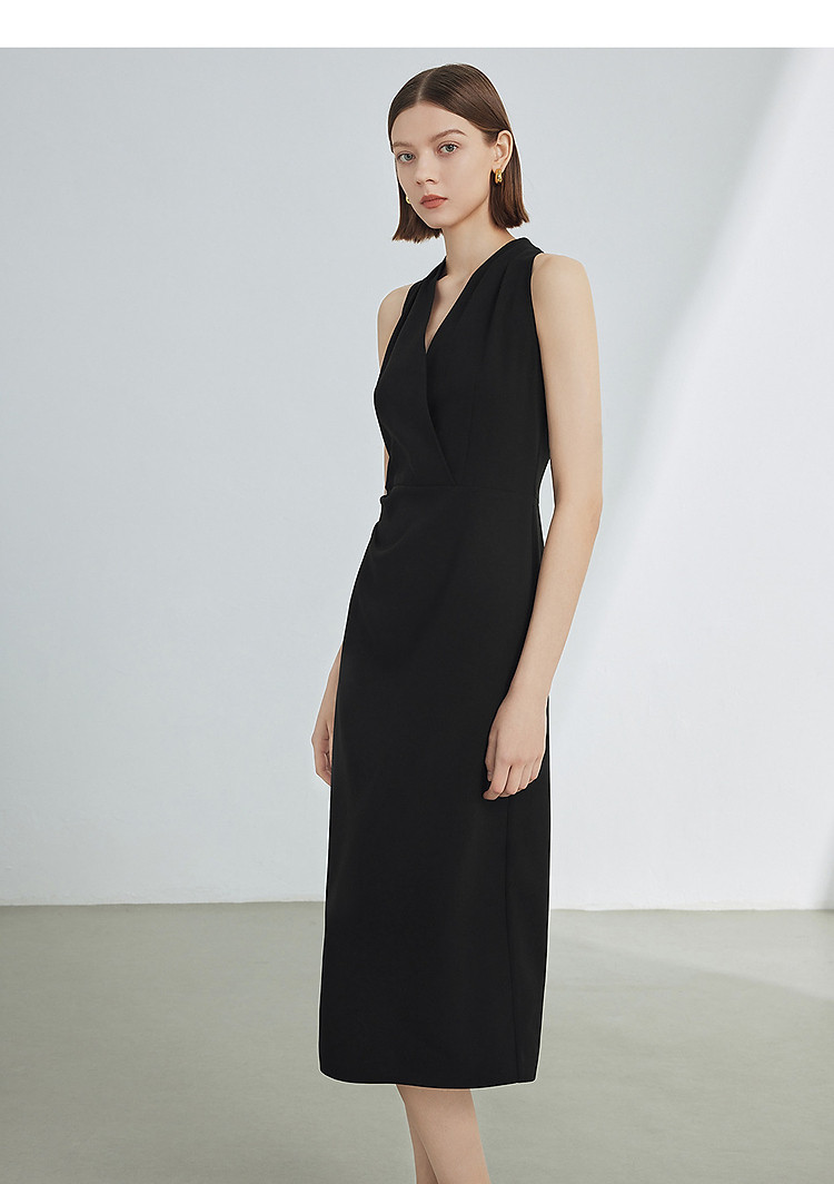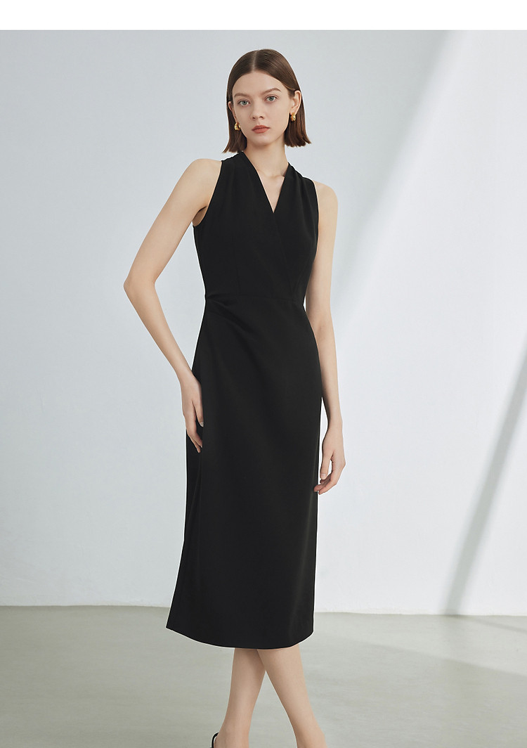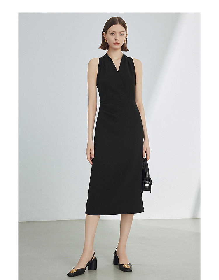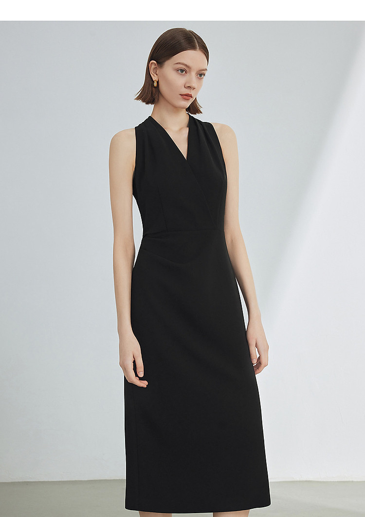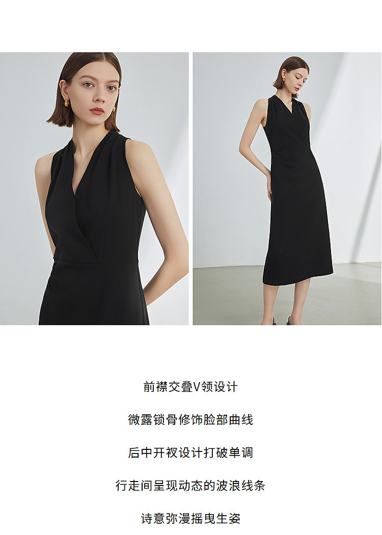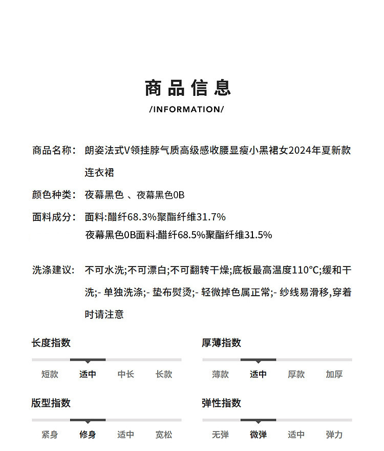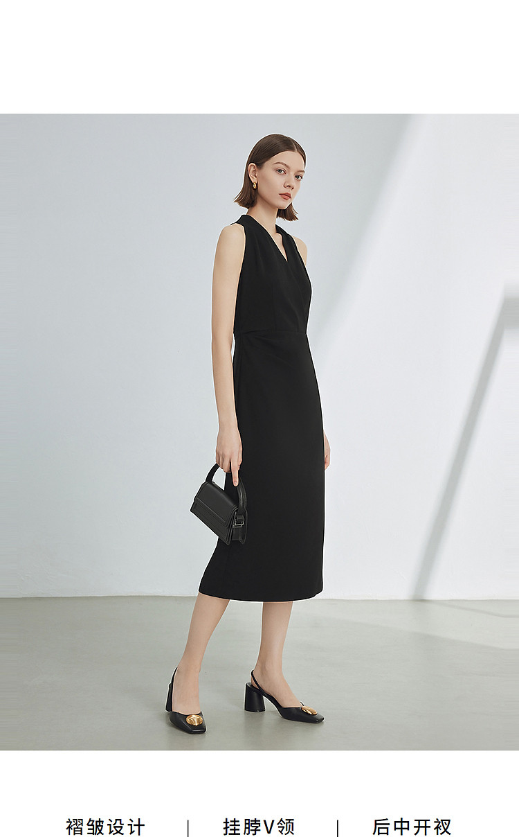 商品名称:法式V领挂脖气质高级感收腰显瘦小黑裙女夏款连衣裙 279385