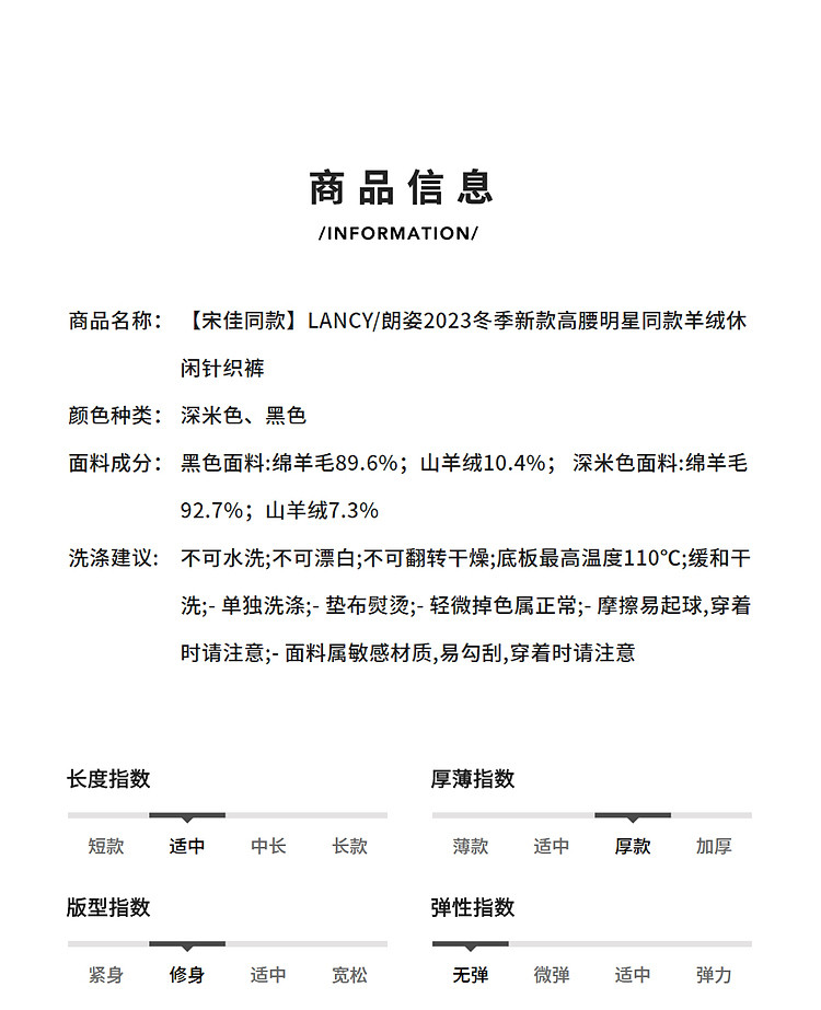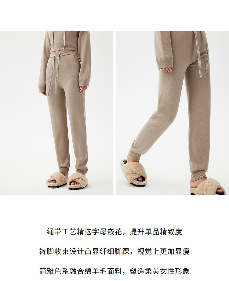 商品名称:冬款高腰明星同款羊绒休闲针织裤朗姿集团旗下俪雅 611609