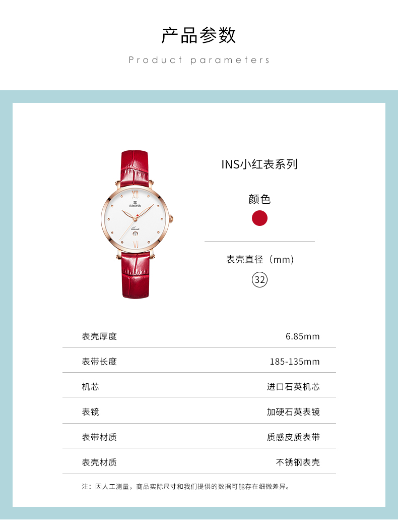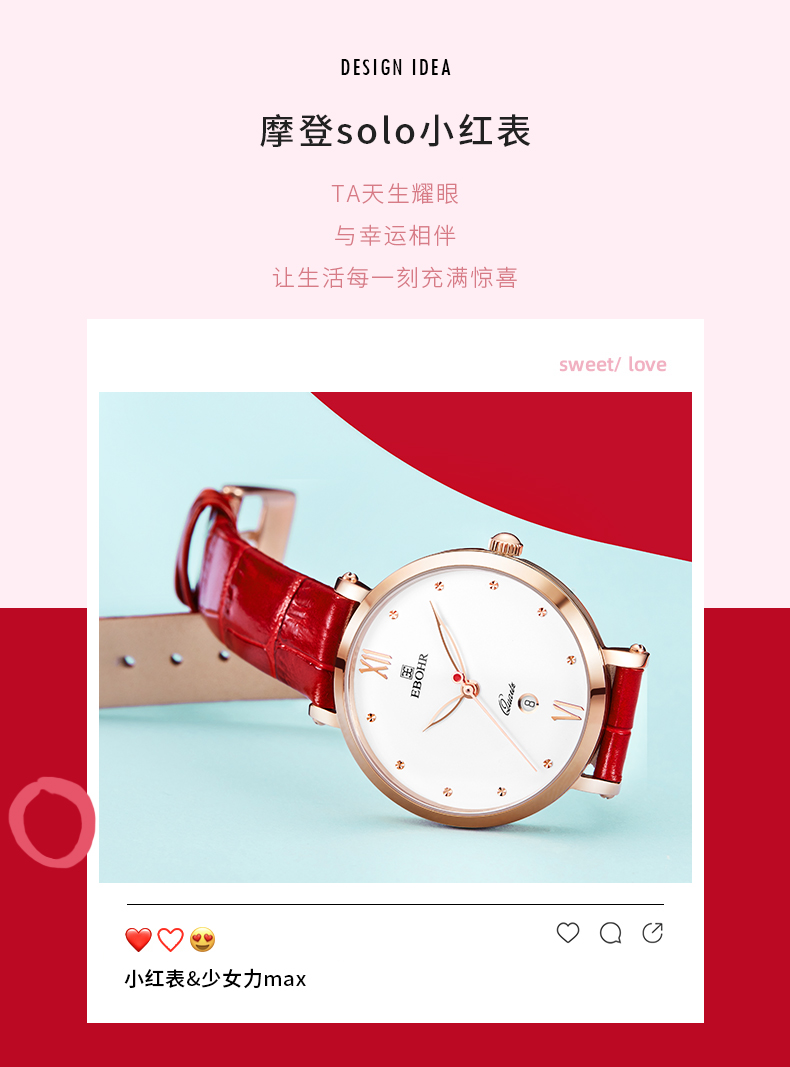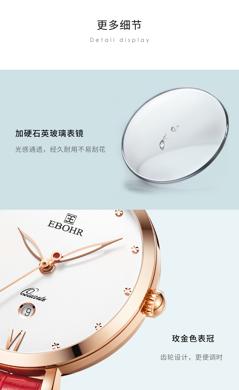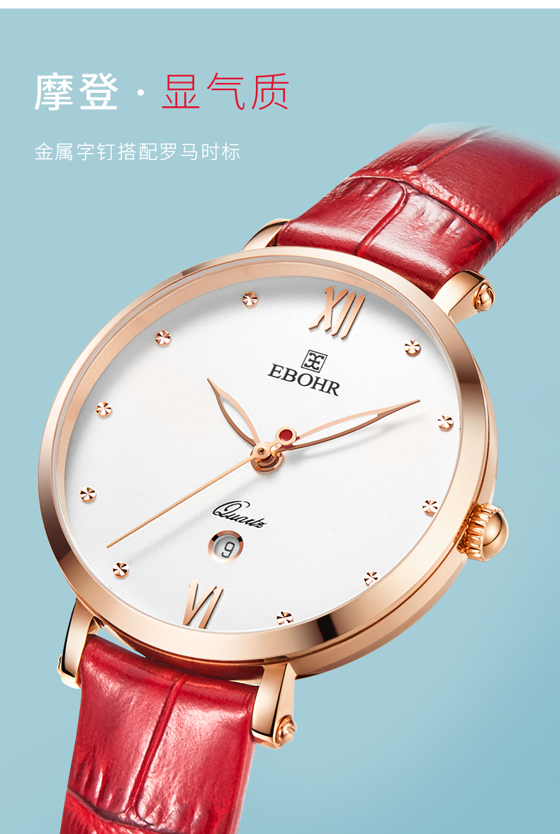 商品名称:依波(EBOHR)时尚文艺石英手表女士腕表简约防水手表51290146