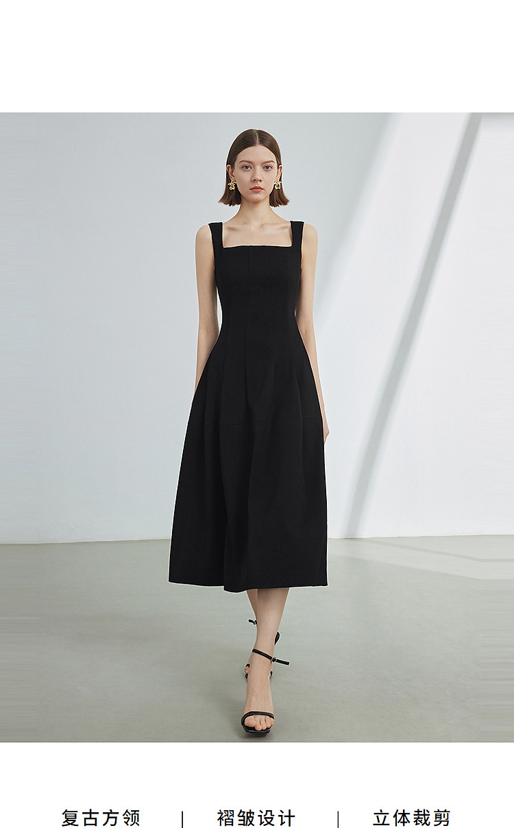 复古方领吊带收腰显瘦气质高级感裙子女夏款气质连衣裙经典系列 863193