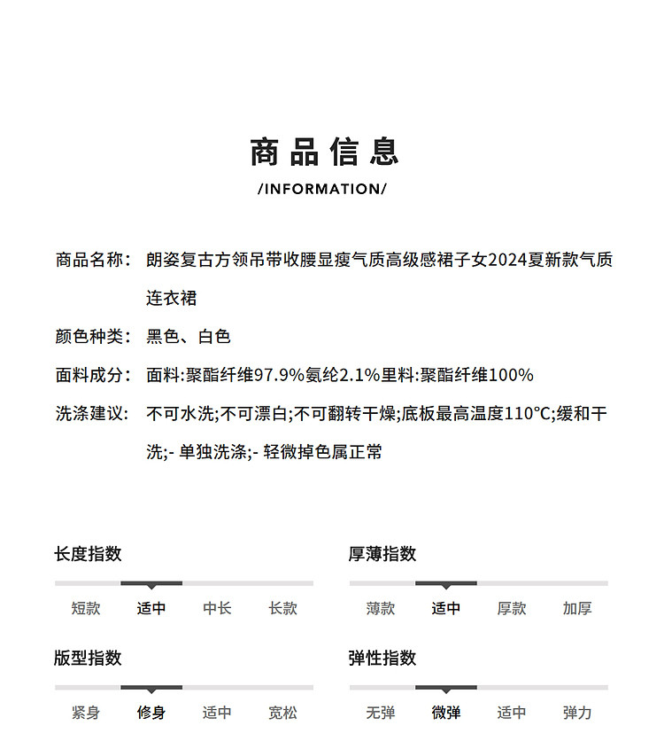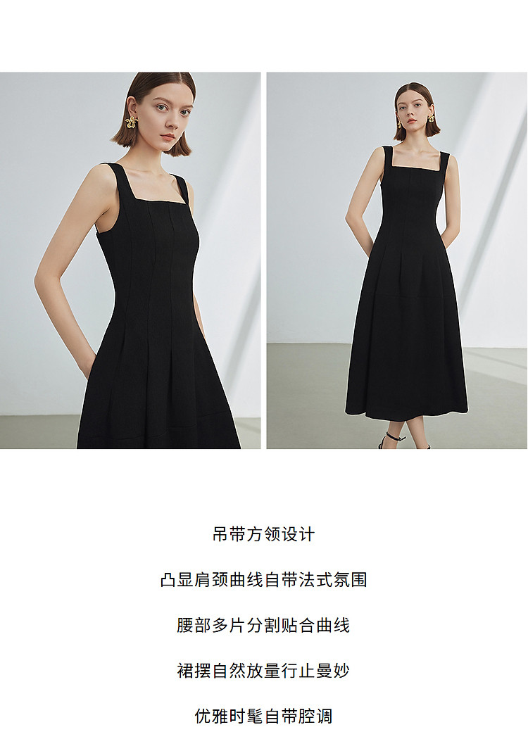 商品名称:复古方领吊带收腰显瘦气质高级感裙子女夏款气质连衣裙经典系列 863193