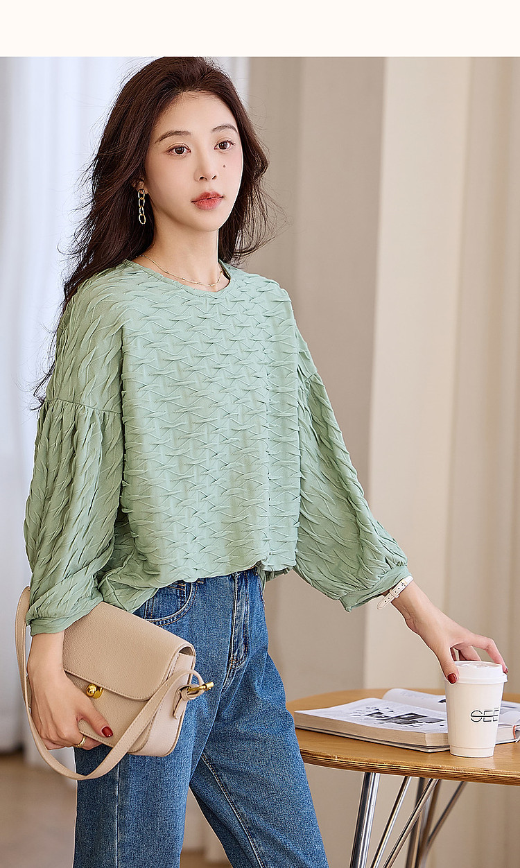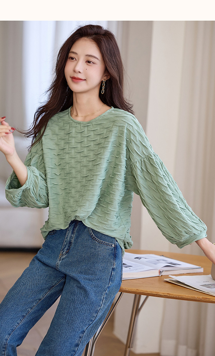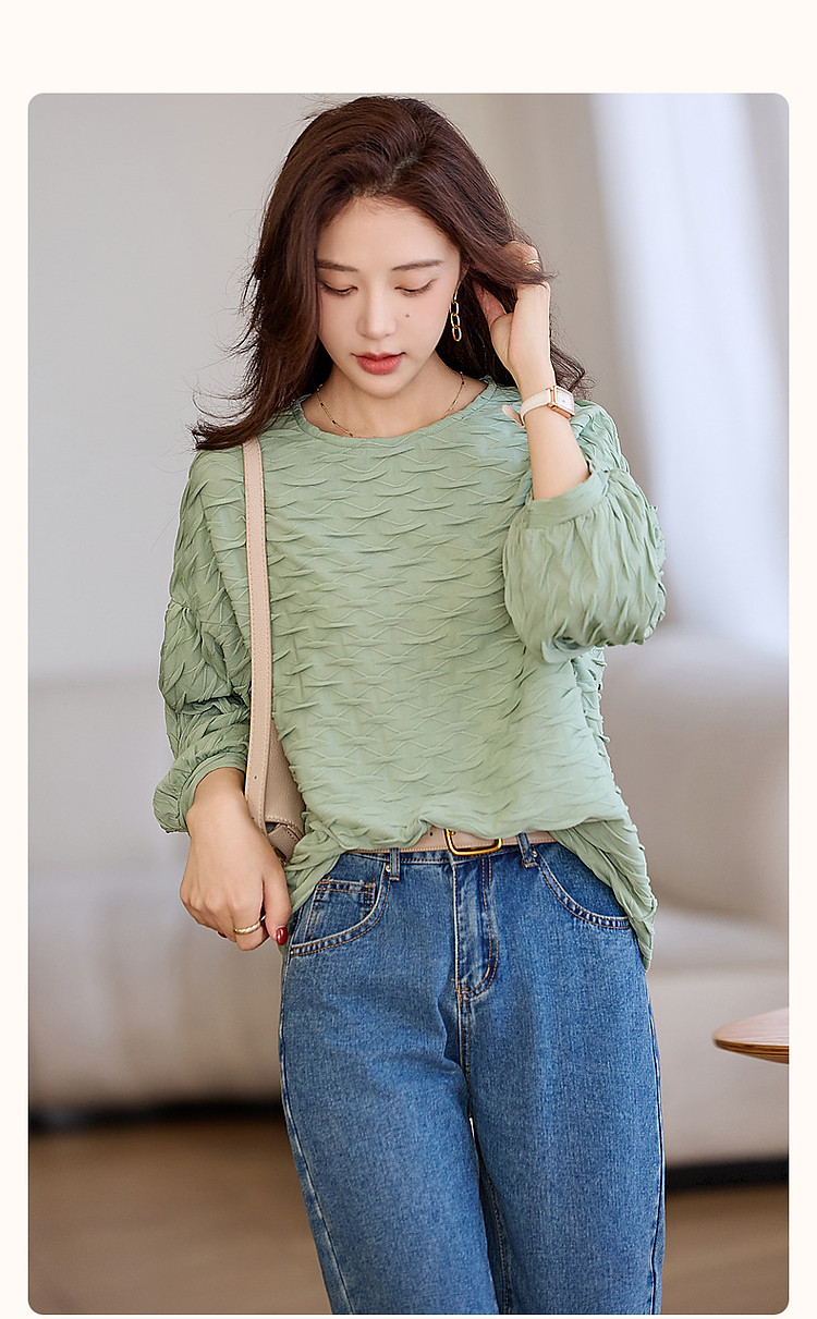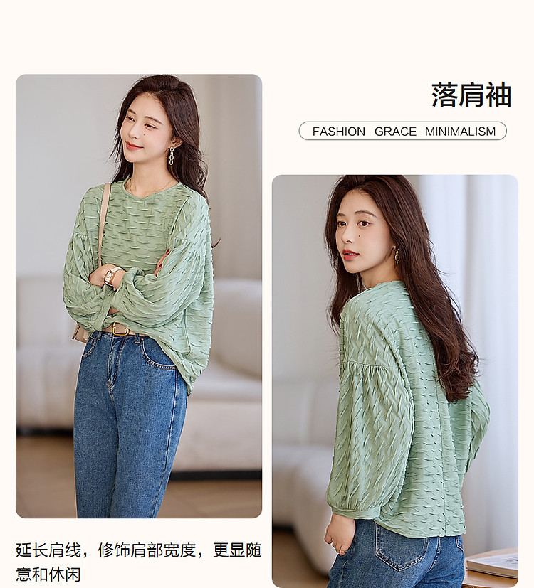 【休闲天花板】春秋圆领九分袖微弹立体肌理感气质舒适卫衣女上衣 702529