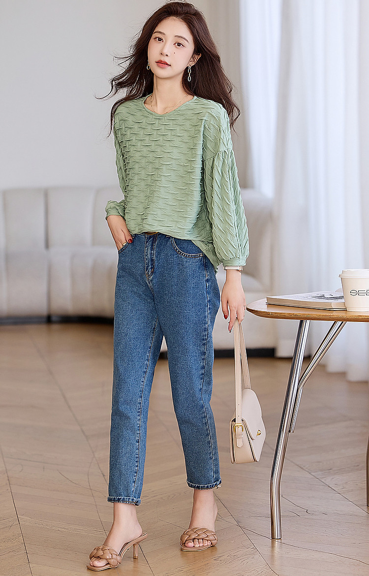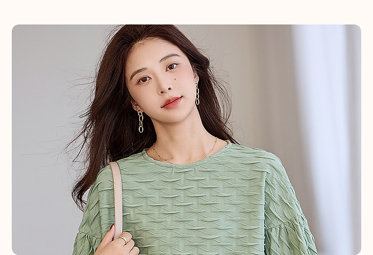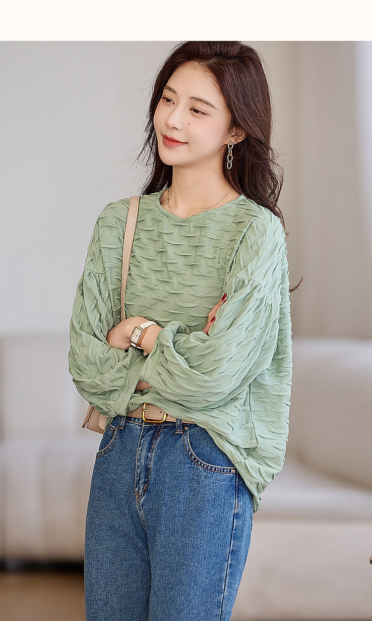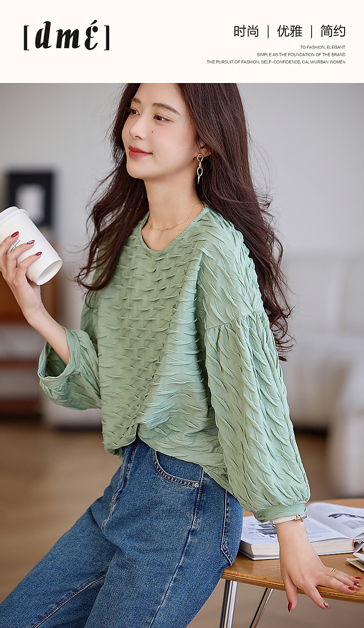 【休闲天花板】春秋圆领九分袖微弹立体肌理感气质舒适卫衣女上衣 702529