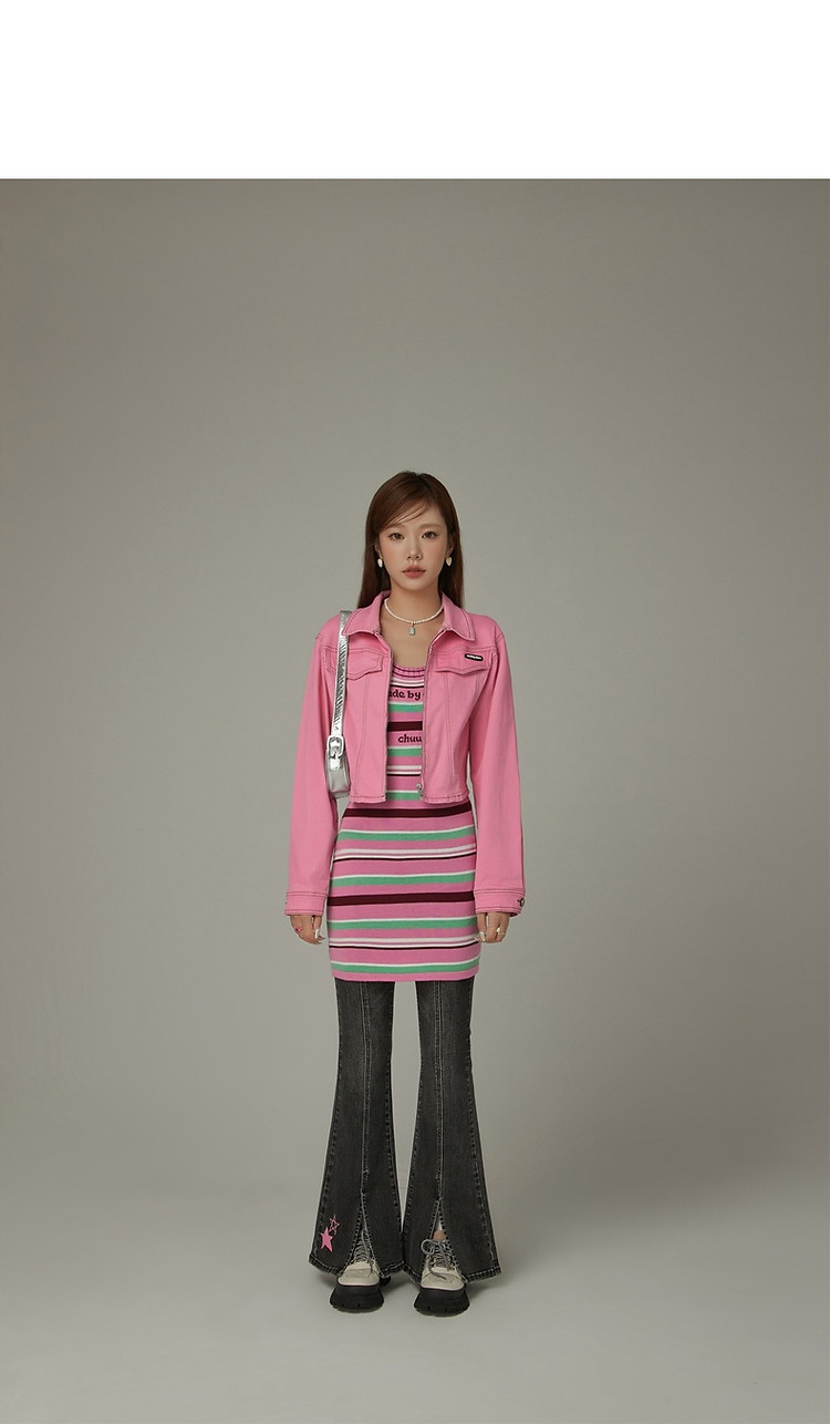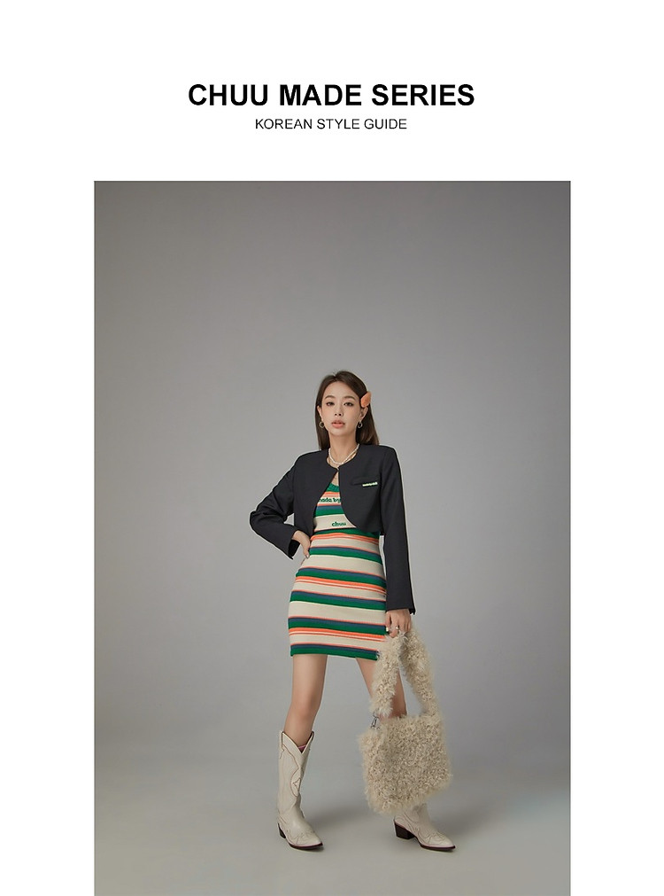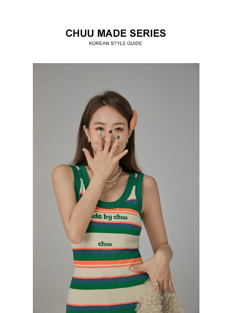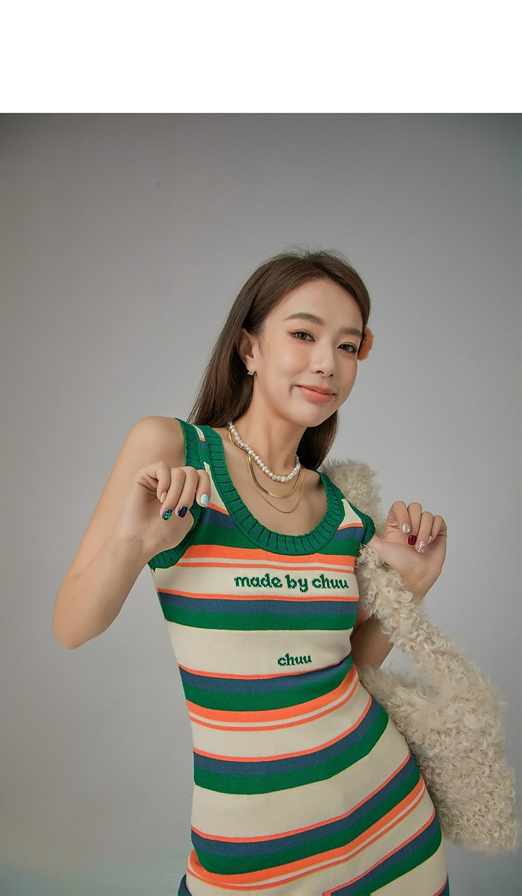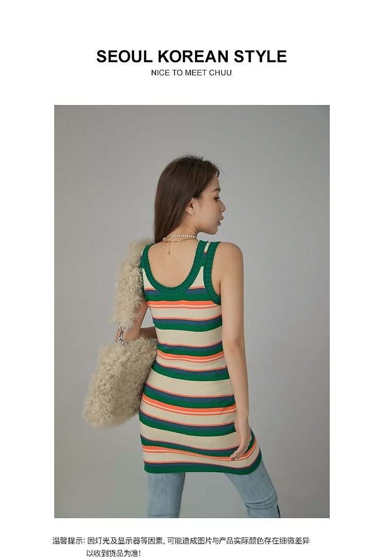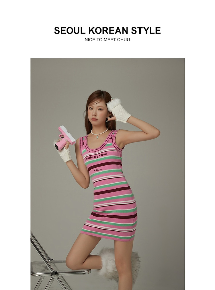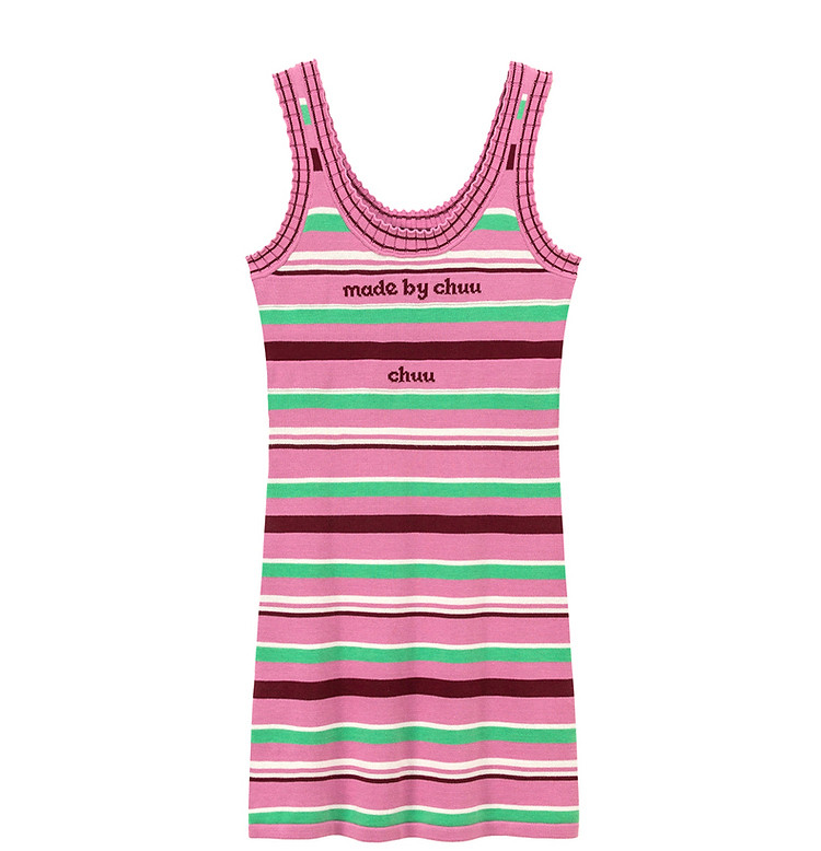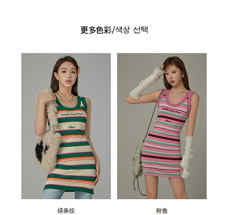商品名称:CHUU字母条纹撞色连衣裙女春秋辣妹修身背心短裙 694611