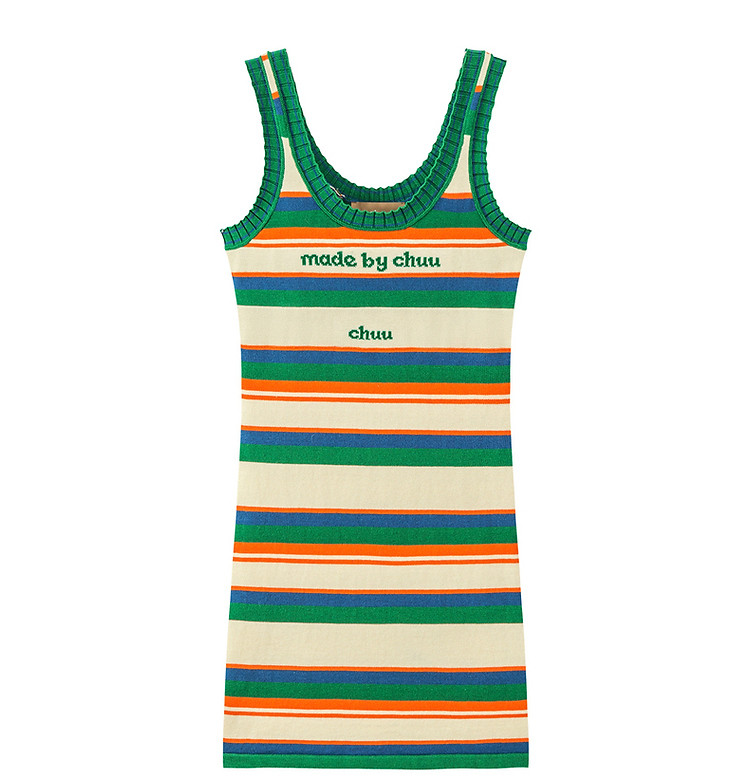 CHUU字母条纹撞色连衣裙女春秋辣妹修身背心短裙 694611