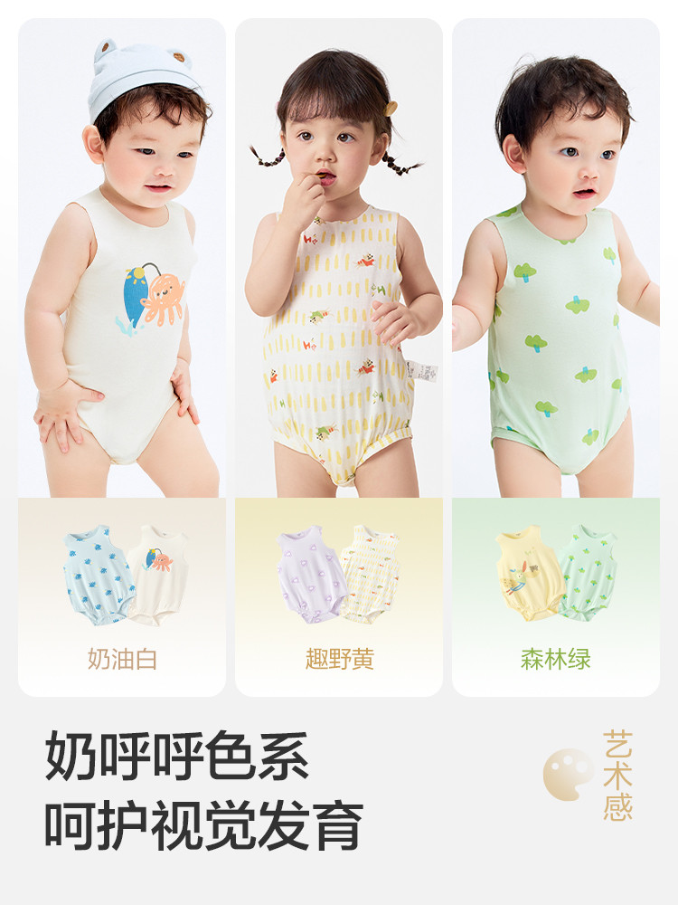 环保新生儿衣服宝宝爬服哈衣男童女童2024春夏装薄款两件装 902981