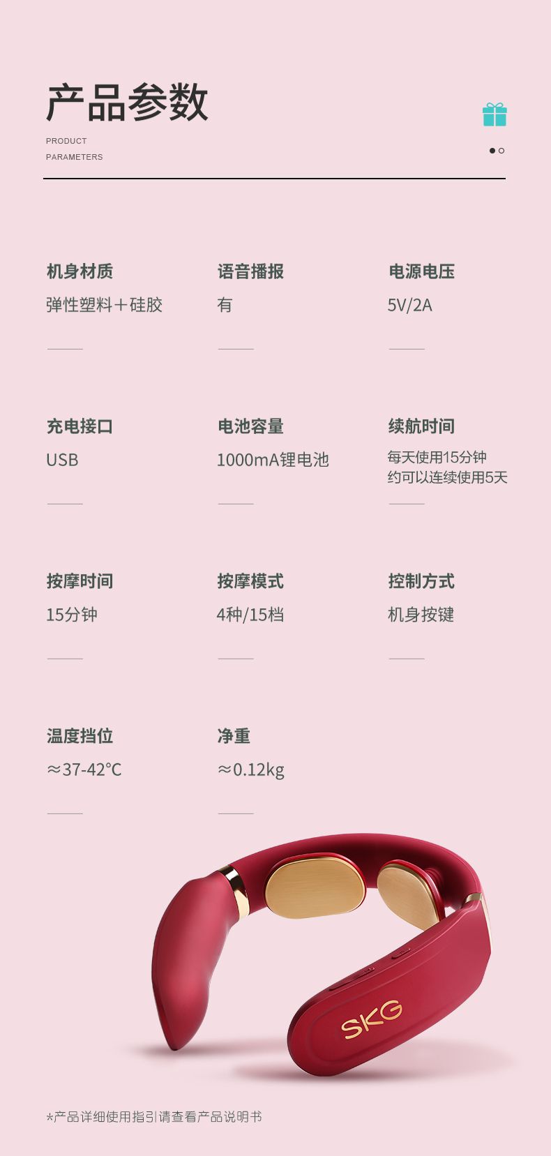 商品名称:SKG颈椎按摩器颈部按摩仪肩颈护颈仪低频脉冲便携智能热敷实用圣诞节新年送男女生父母长辈礼物礼品 4330