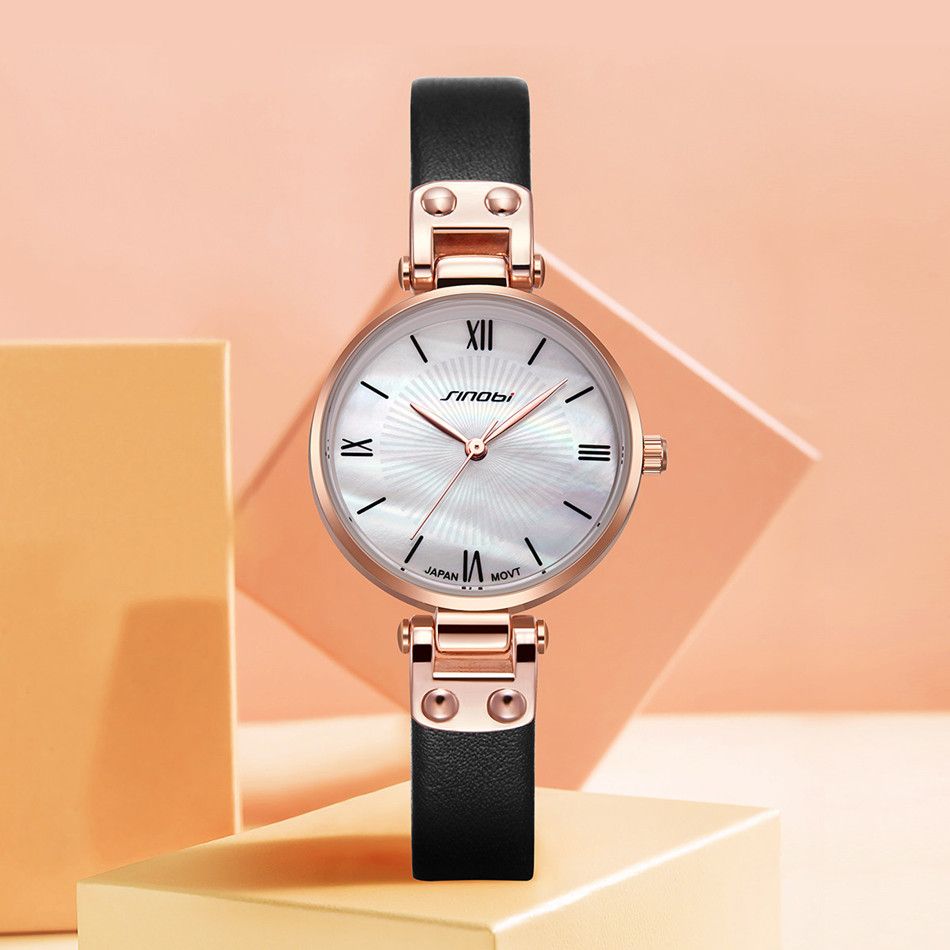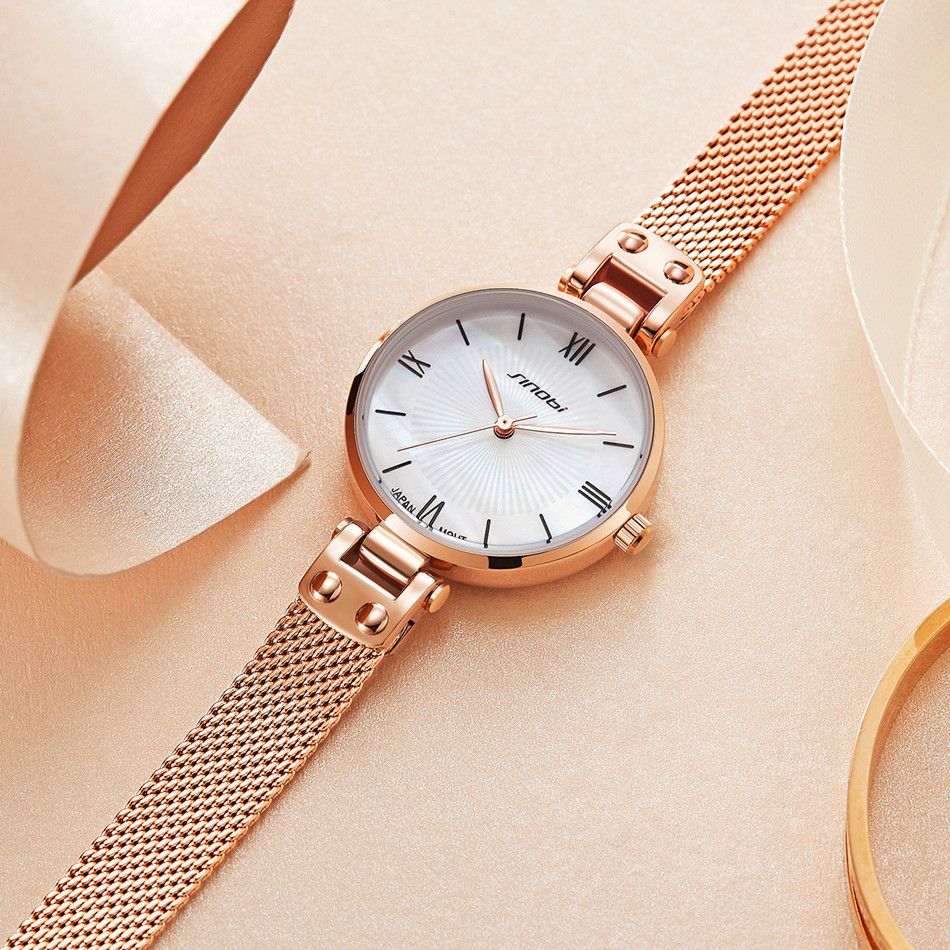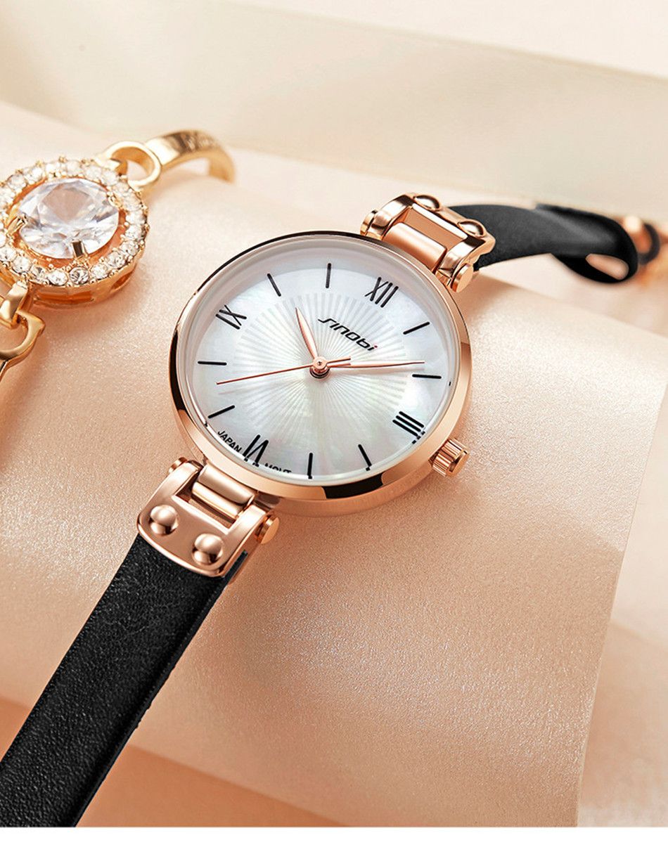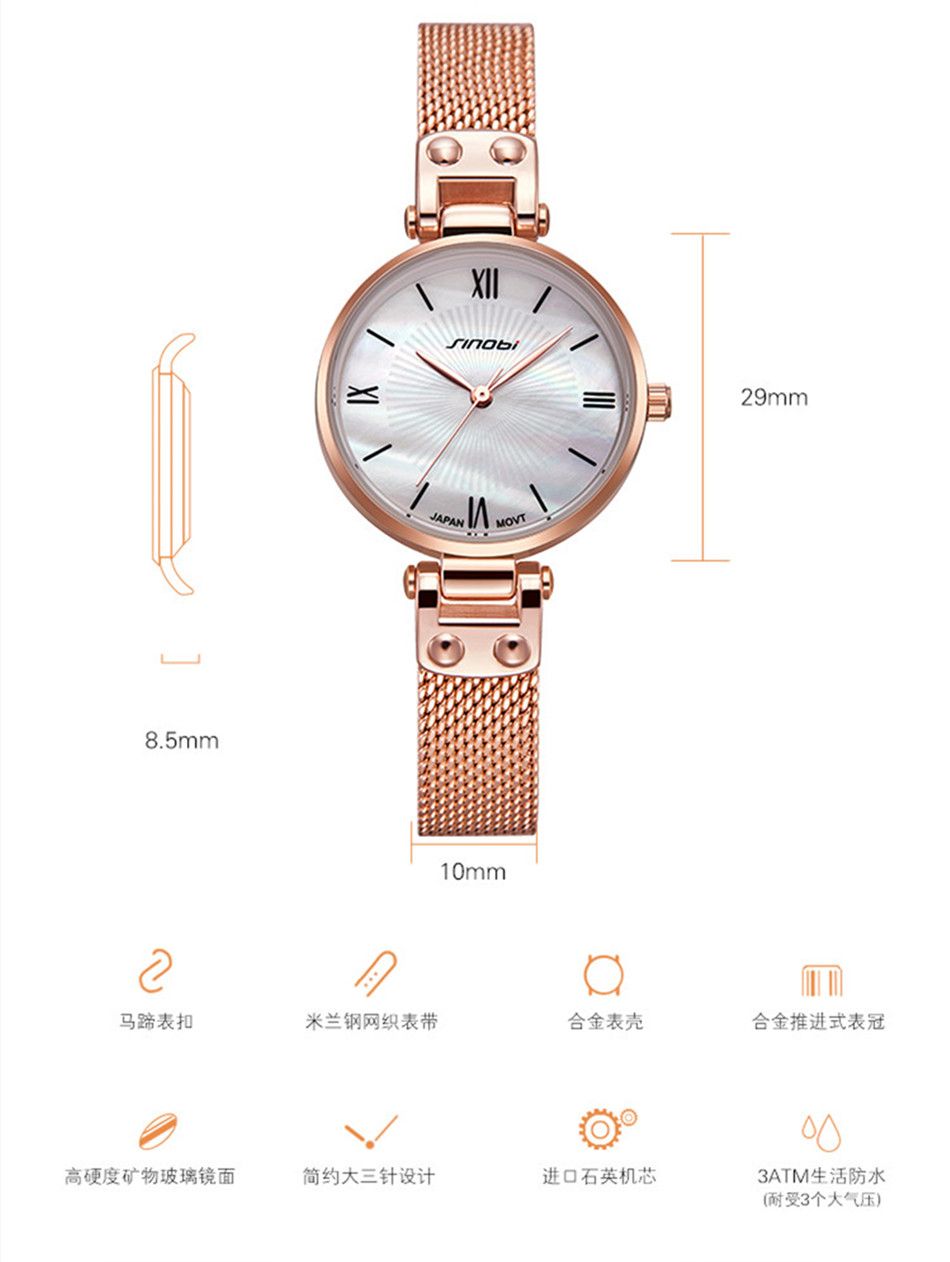 sinobi 时尚轻奢女款石英手表11S9818L01玫壳白面玫色表带