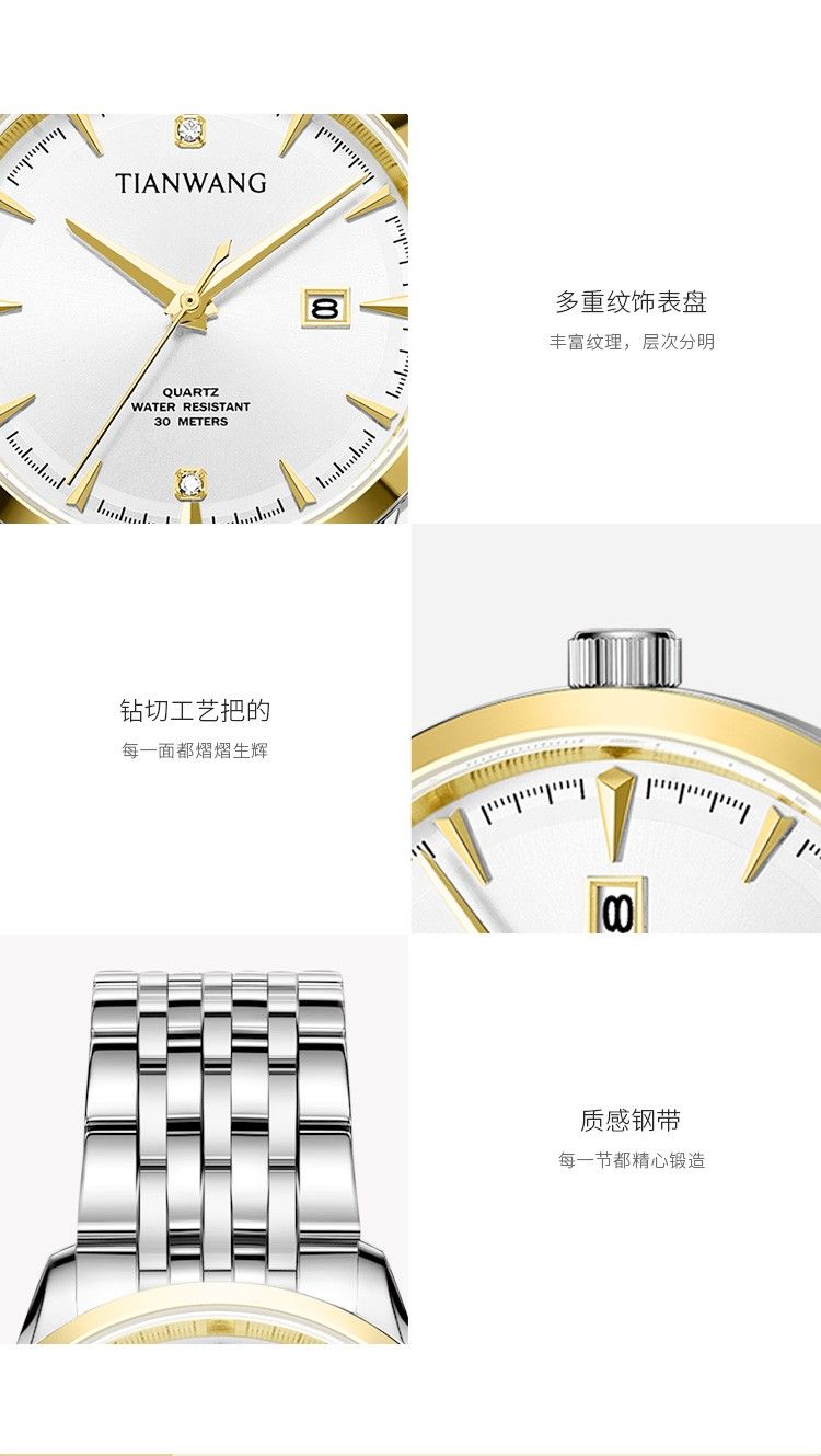 商品名称:天王(TIAN WANG)手表商场同款品牌直发休闲钢带男士女士手表商务皮带石英表送礼物推荐