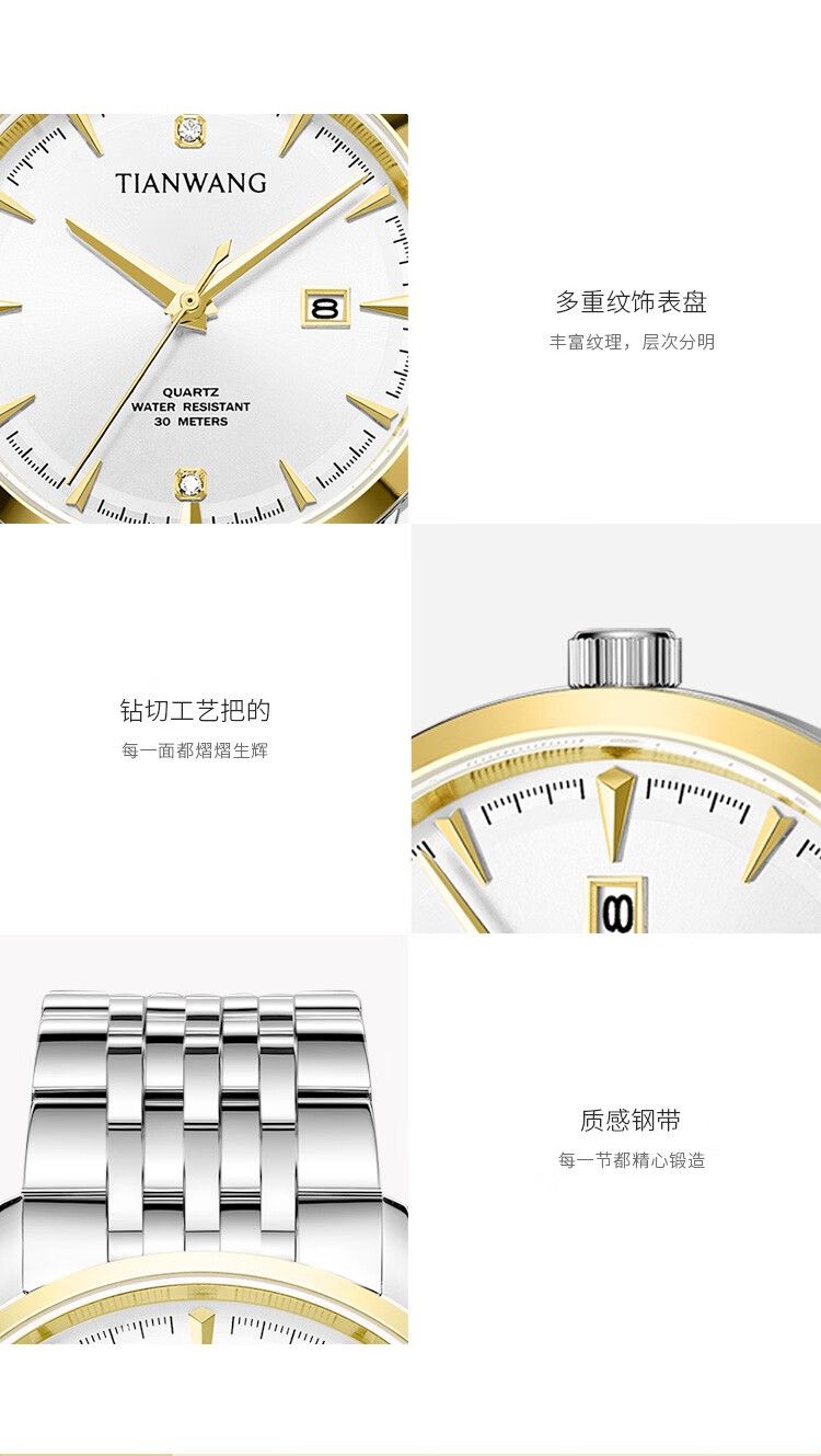 天王(TIAN WANG)手表商场同款品牌直发休闲钢带男士女士手表商务皮带石英表送礼物推荐