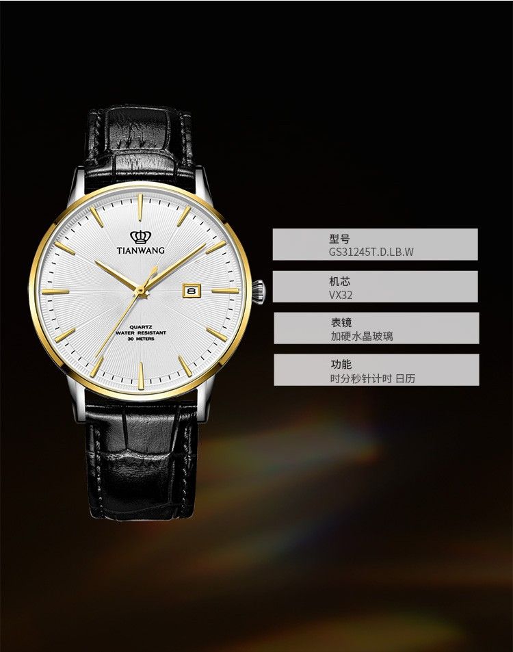 商品名称:天王(TIAN WANG)手表商场同款品牌直发休闲钢带男士手表商务皮带石英表送礼物推荐