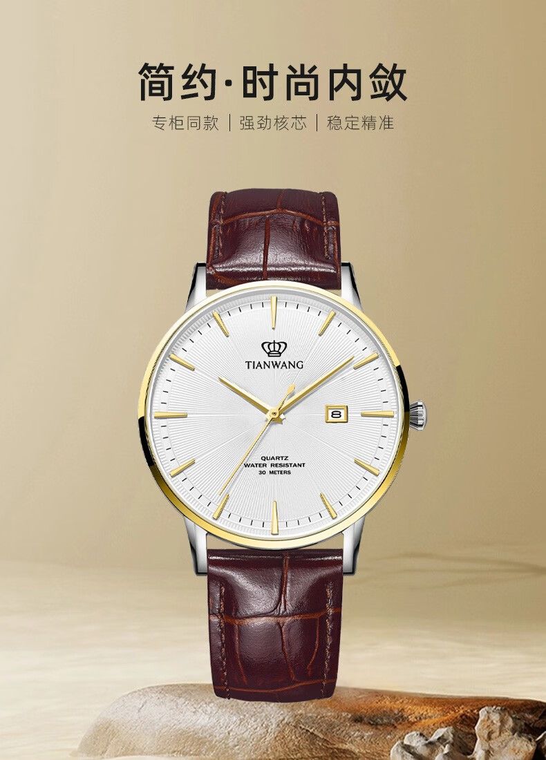 天王(TIAN WANG)手表商场同款品牌直发休闲钢带男士手表商务皮带石英表送礼物推荐