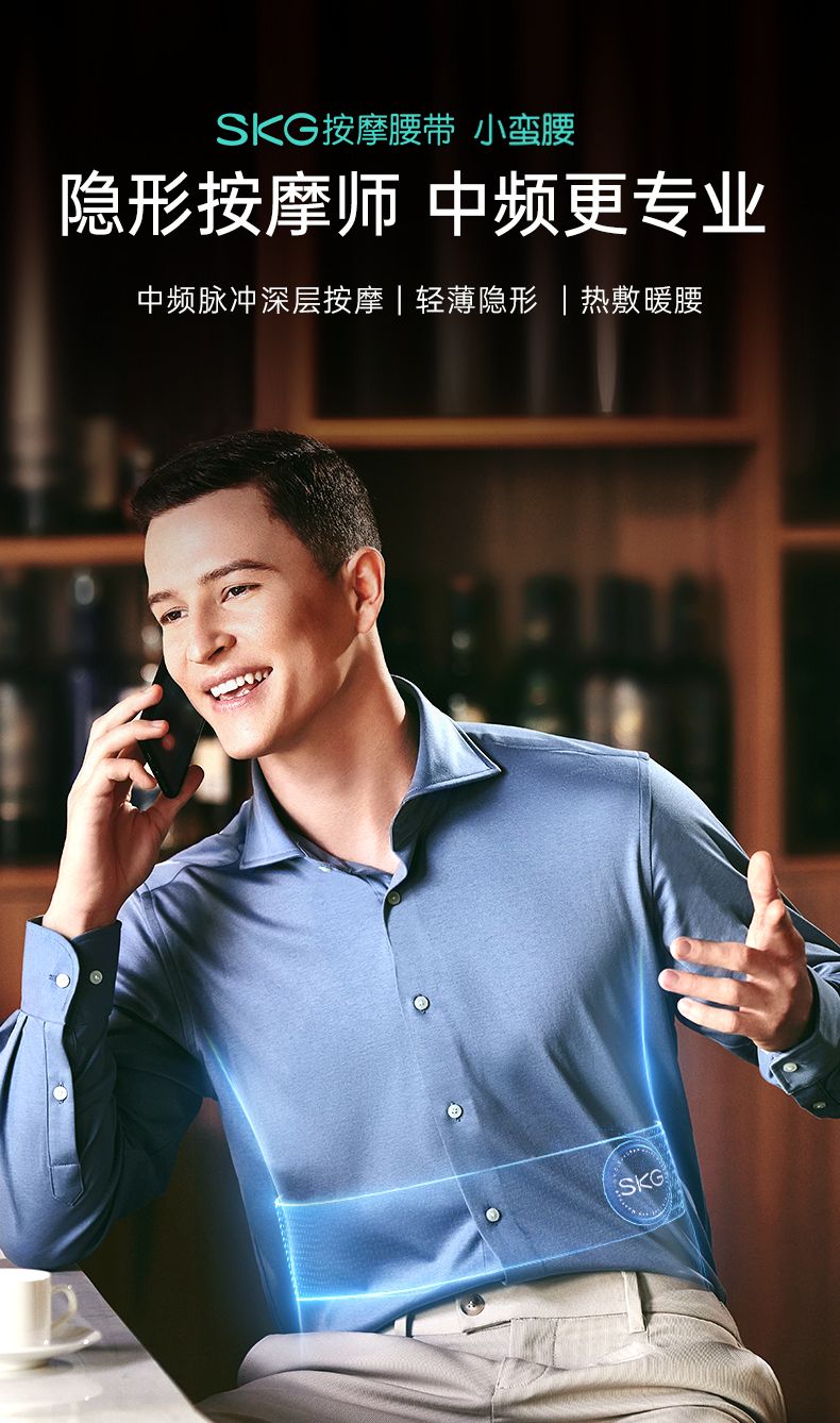 skg腰部按摩器【小蛮腰】无线热敷护腰腹智能按摩仪 腰带多功能揉捏 送男女友生日礼物 W7小蛮腰