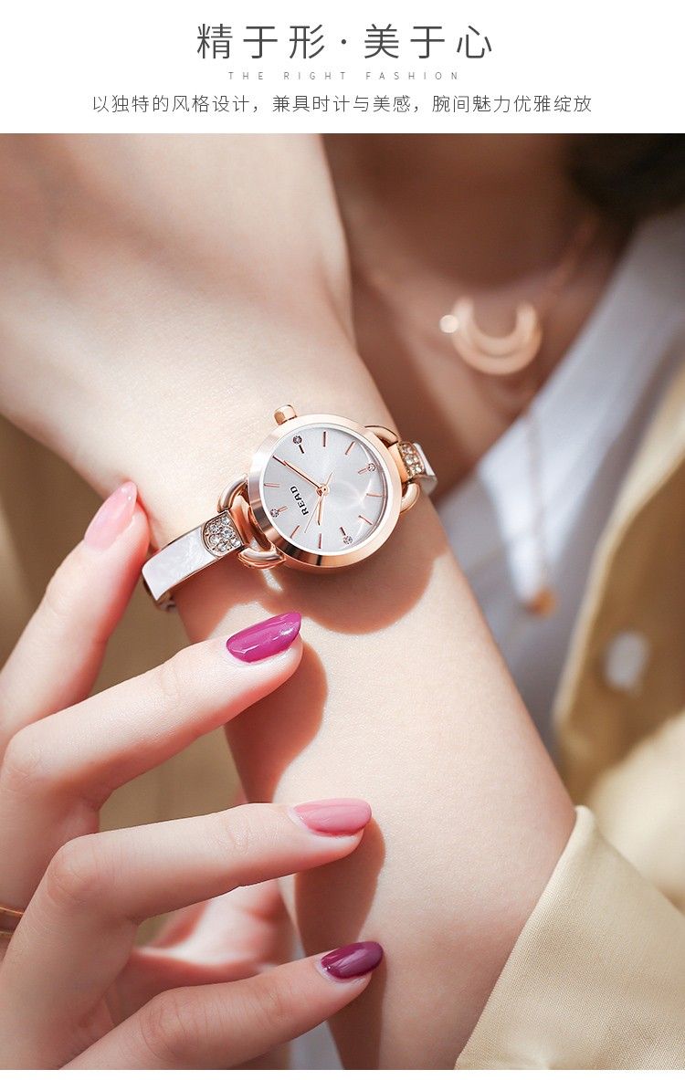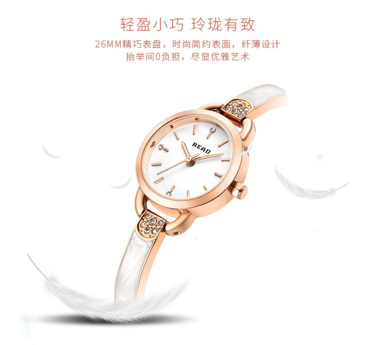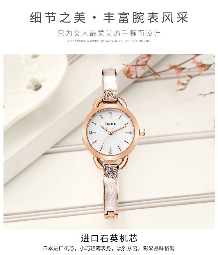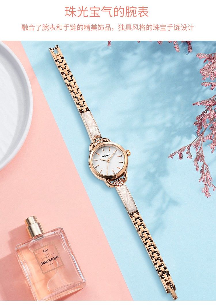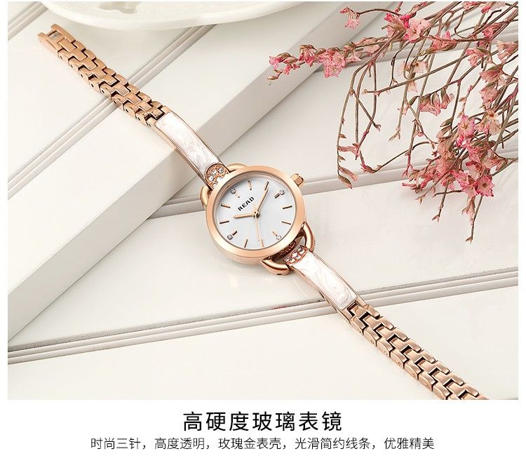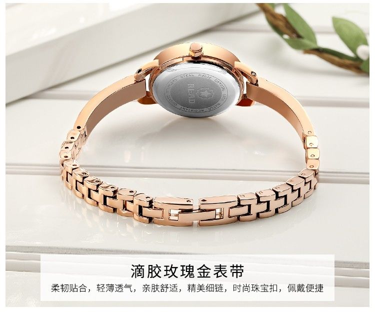商品名称:锐力READ女士手表 小巧表盘甜美玫瑰金手链式钢带进口机芯石英女表