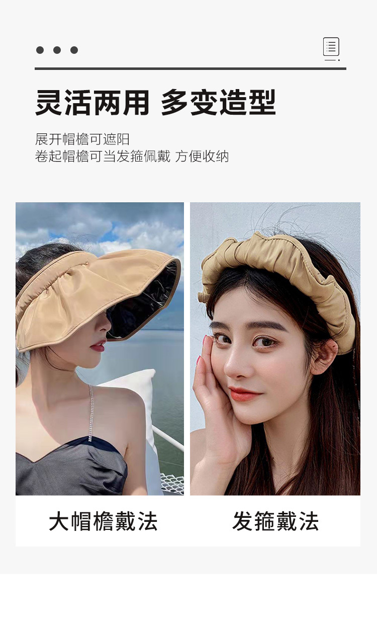 梓延严选防紫外线贝壳空顶遮阳帽子女夏季防紫外线可折叠发箍贝壳帽