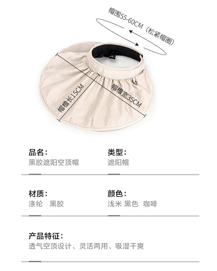 商品名称:梓延严选防紫外线贝壳空顶遮阳帽子女夏季防紫外线可折叠发箍贝壳帽