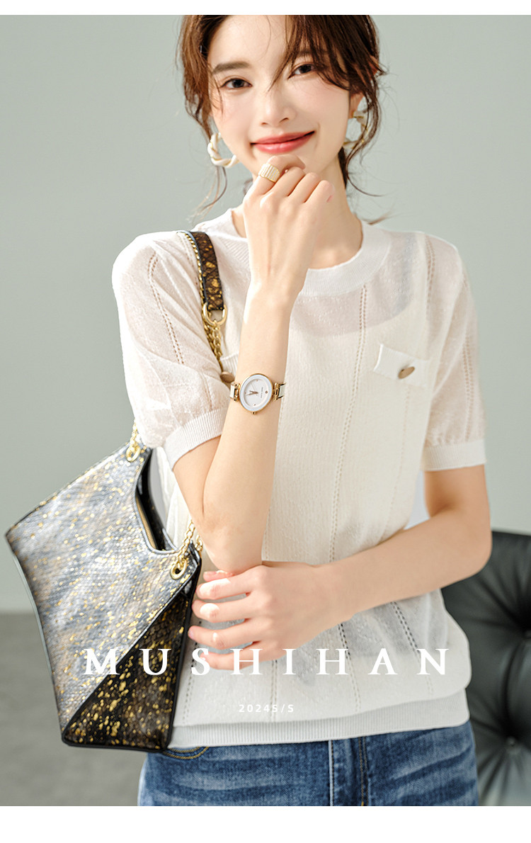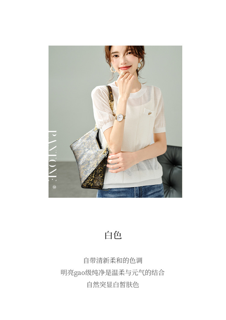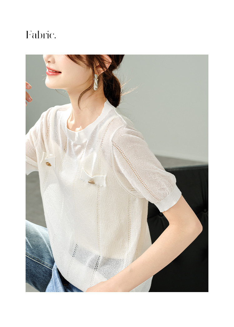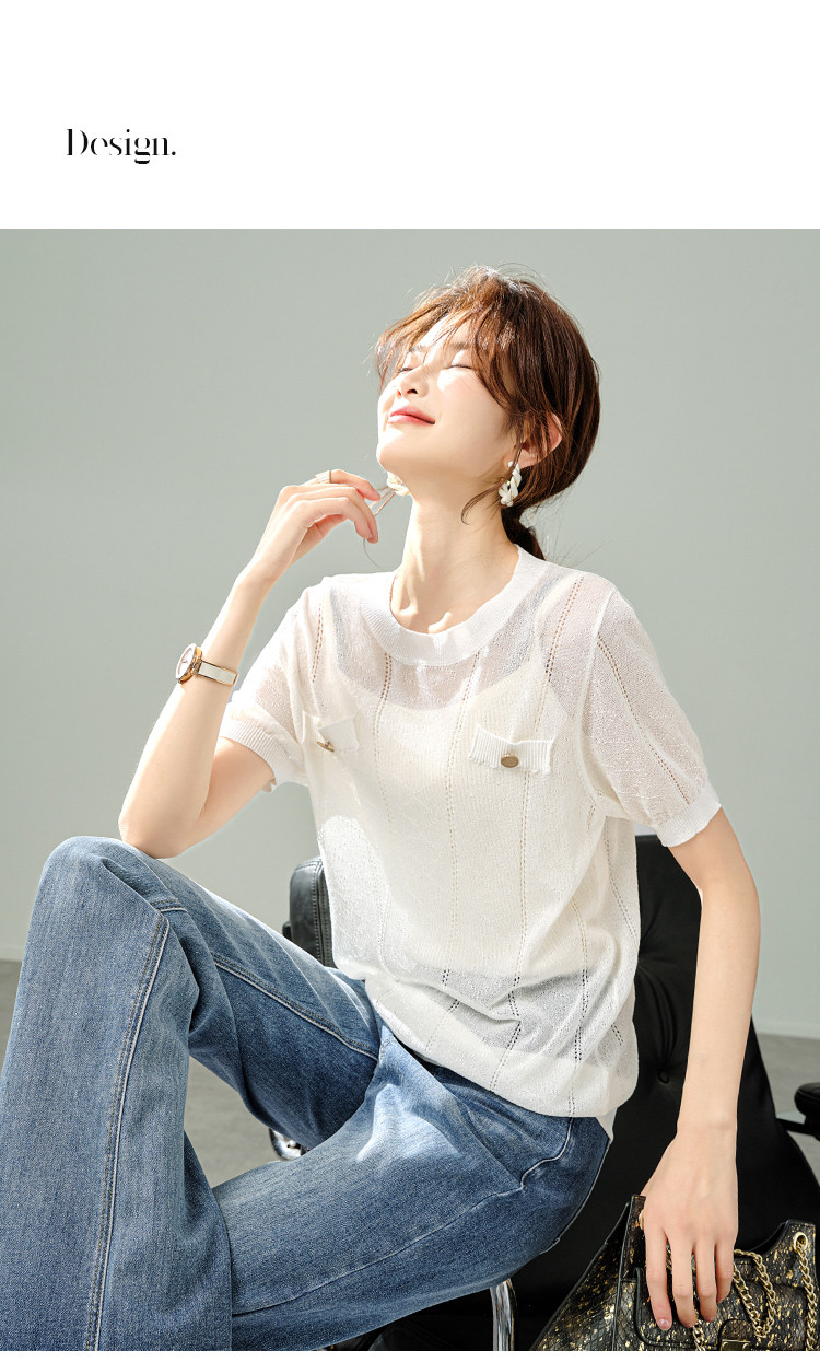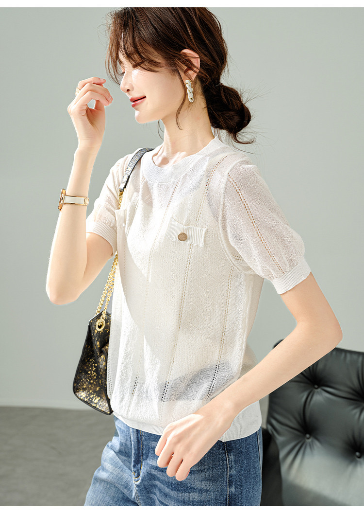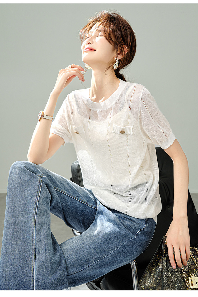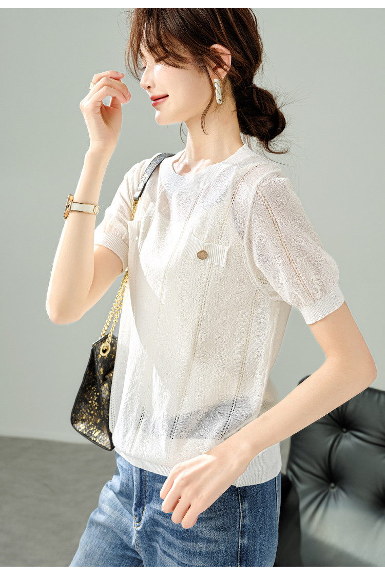 商品名称:【福利钜惠】优雅气质针织衫简约小香风假口袋镂空短袖T恤针织衫 348169