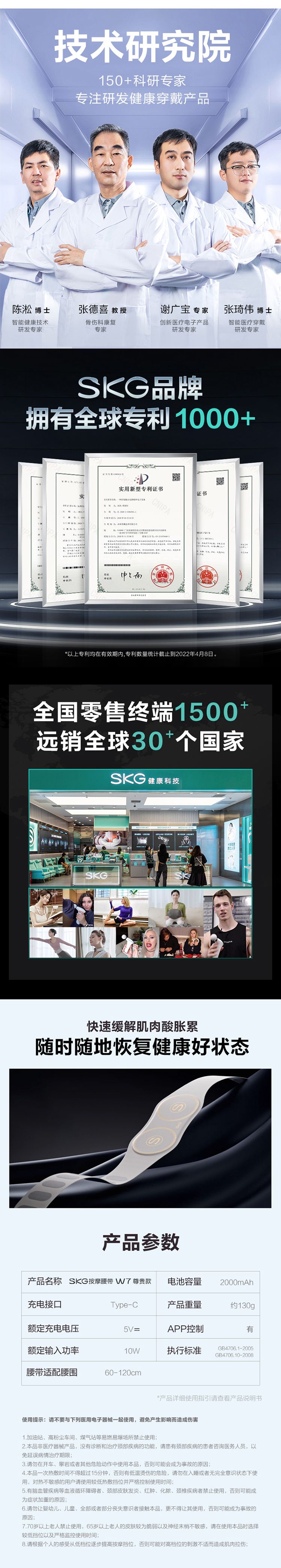 商品名称:SKG生日礼物新品腰部按摩器W7尊贵无线按摩腰带热敷多功能智能按摩仪实用礼品送父母爸妈男女友老婆 张凌赫代言-W7尊贵