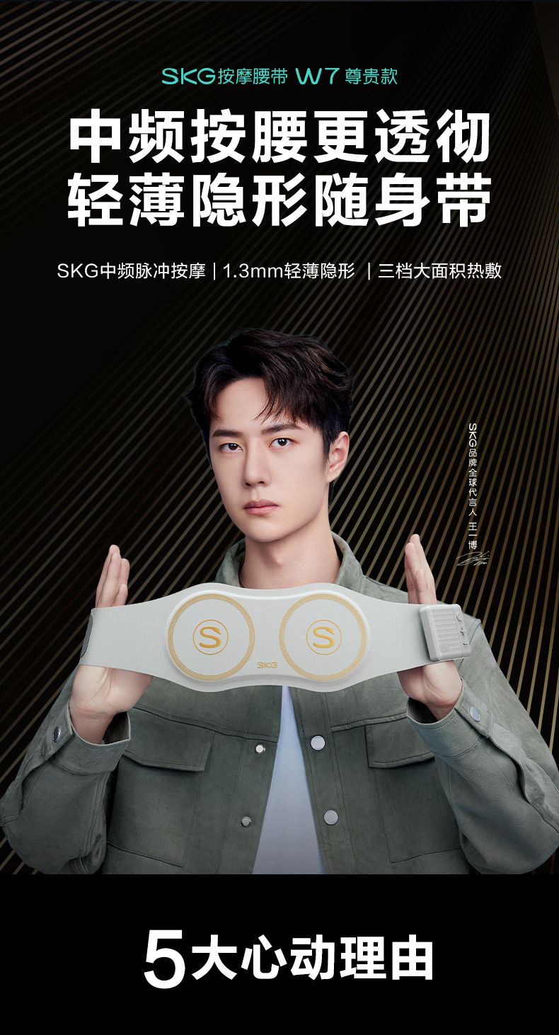 SKG生日礼物新品腰部按摩器W7尊贵无线按摩腰带热敷多功能智能按摩仪实用礼品送父母爸妈男女友老婆 张凌赫代言-W7尊贵