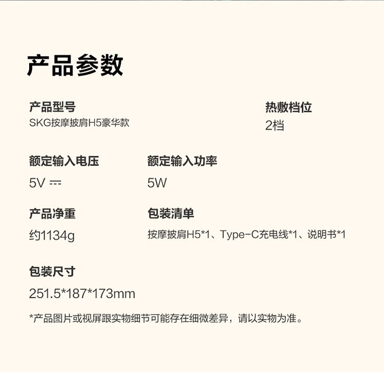 商品名称:SKG颈椎按摩器豪华款肩颈背部腰脖子肩膀斜方肌颈部按摩仪热敷 H5 豪华款
