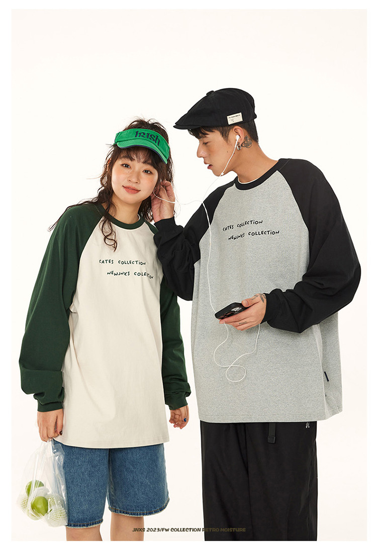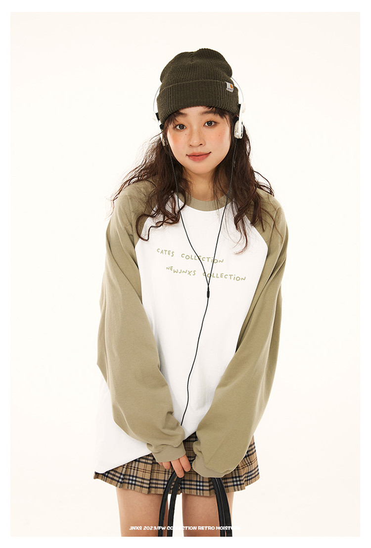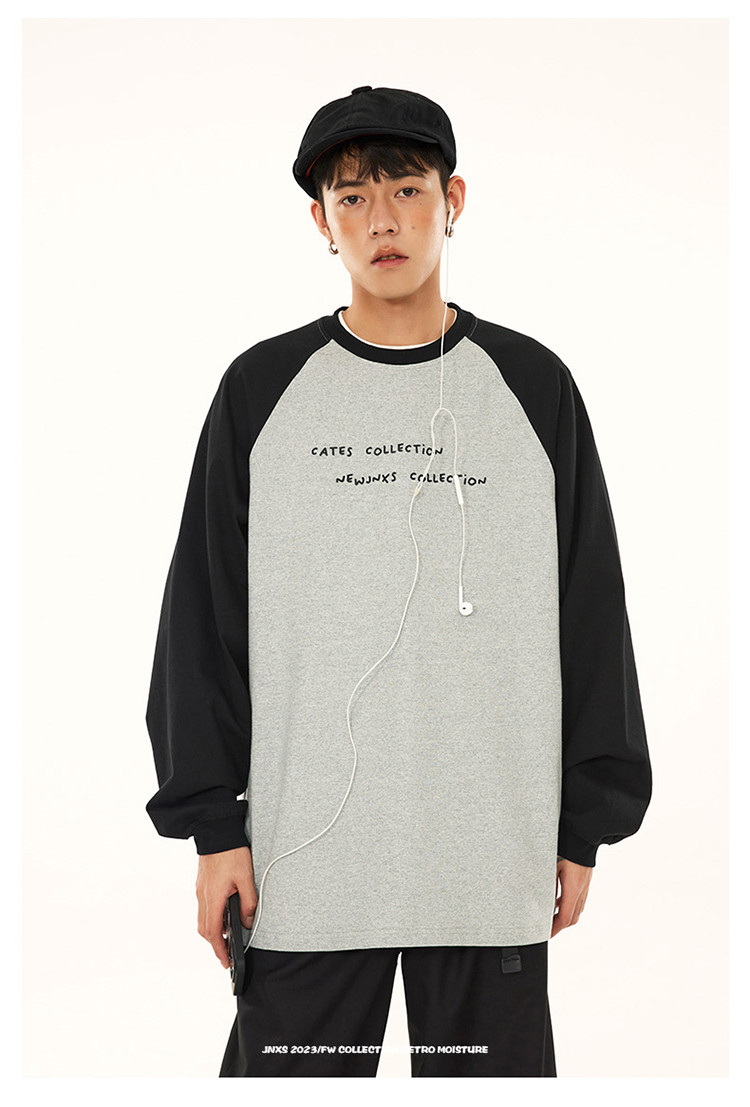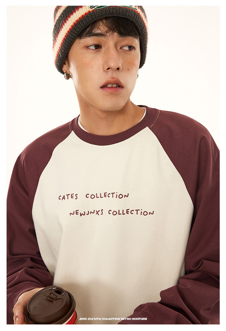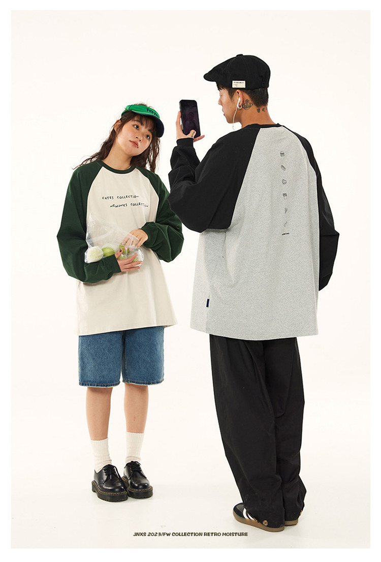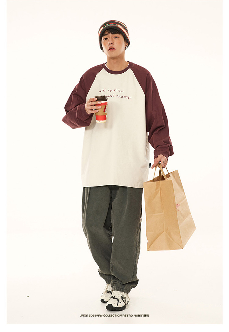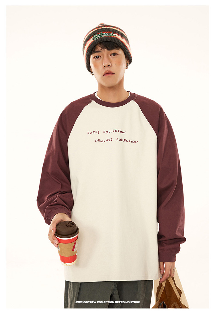 商品名称:JNXS/江南先生日系复古拼接长袖T恤男女春季潮牌情侣打底衫 448017