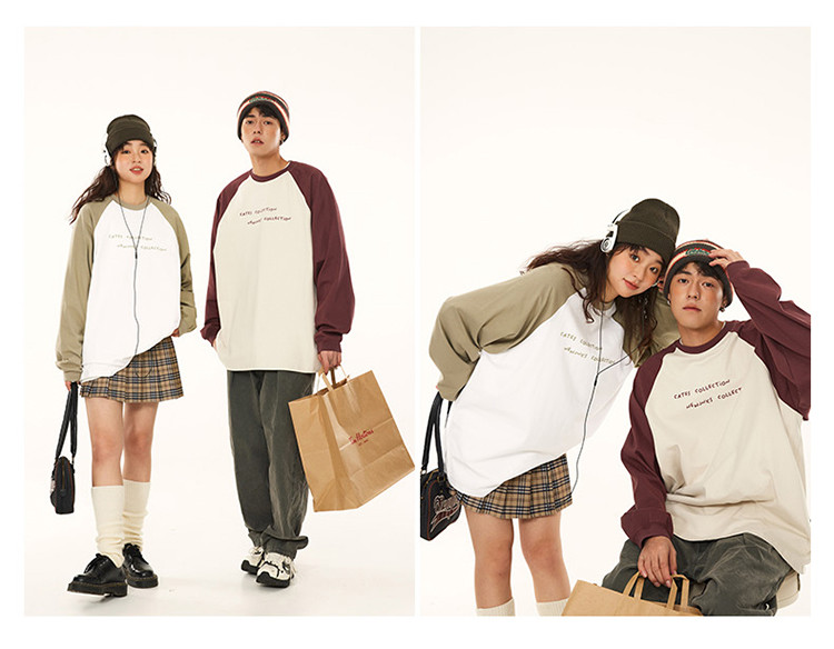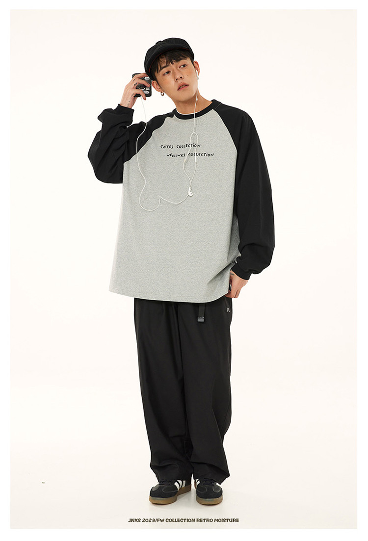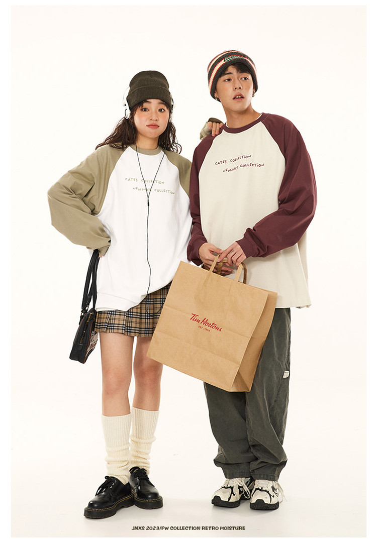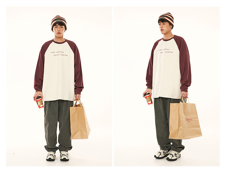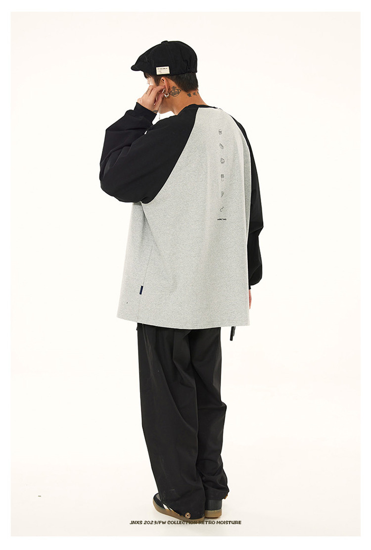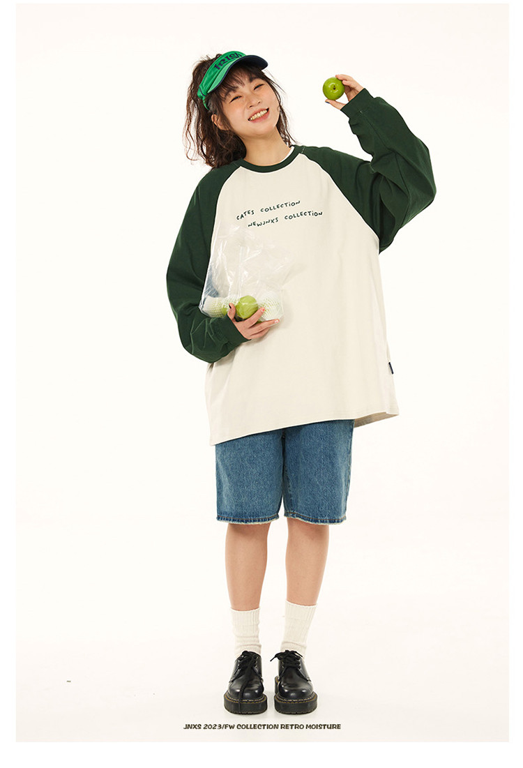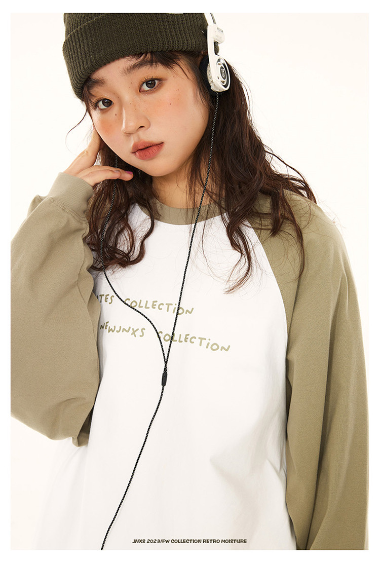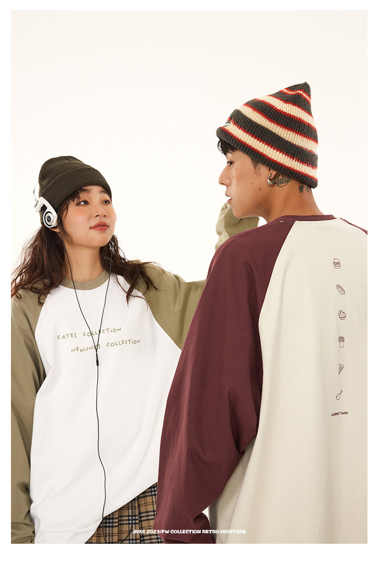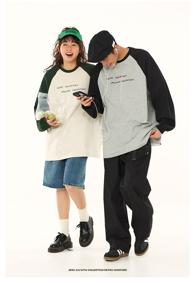 商品名称:JNXS/江南先生日系复古拼接长袖T恤男女春季潮牌情侣打底衫 448017