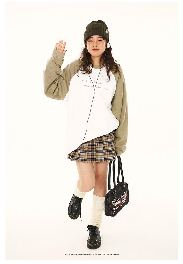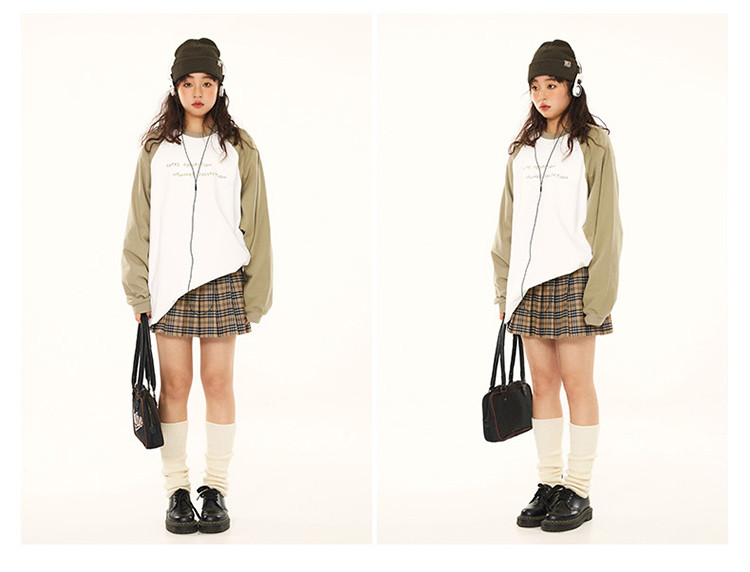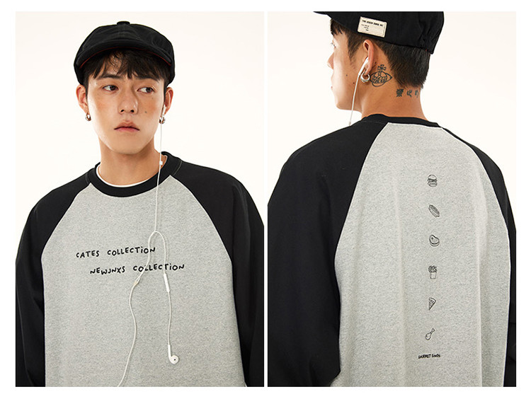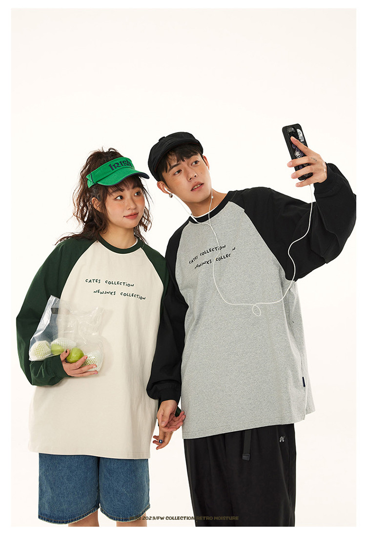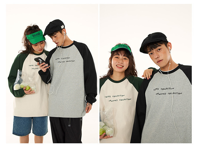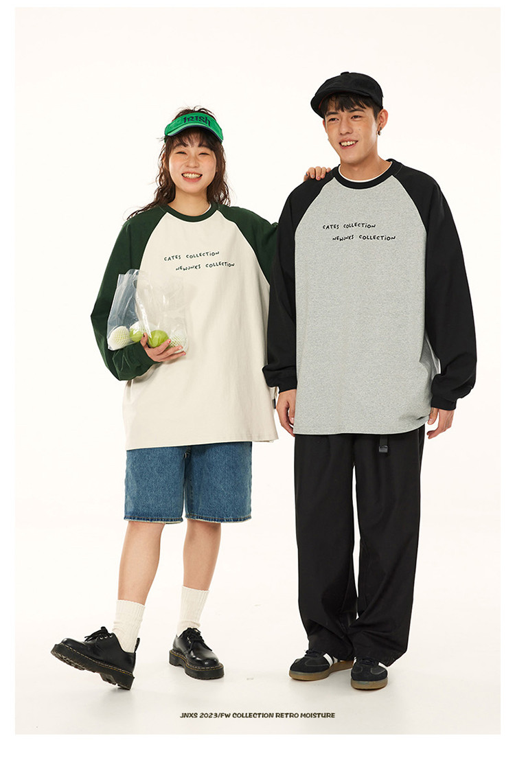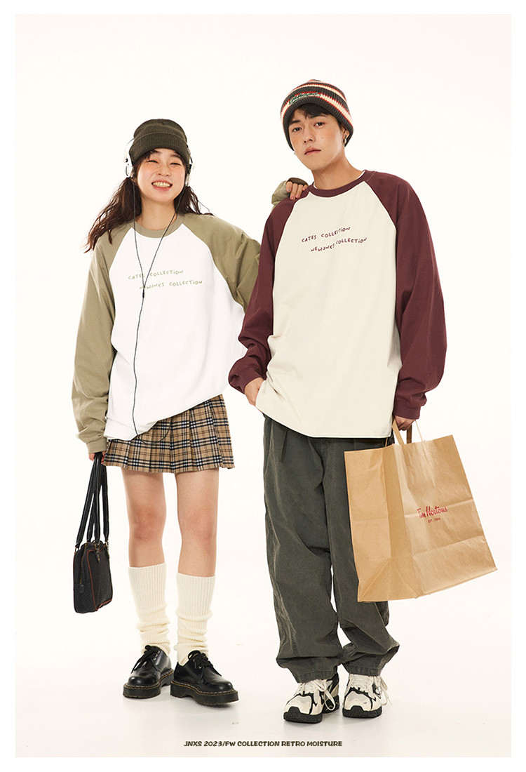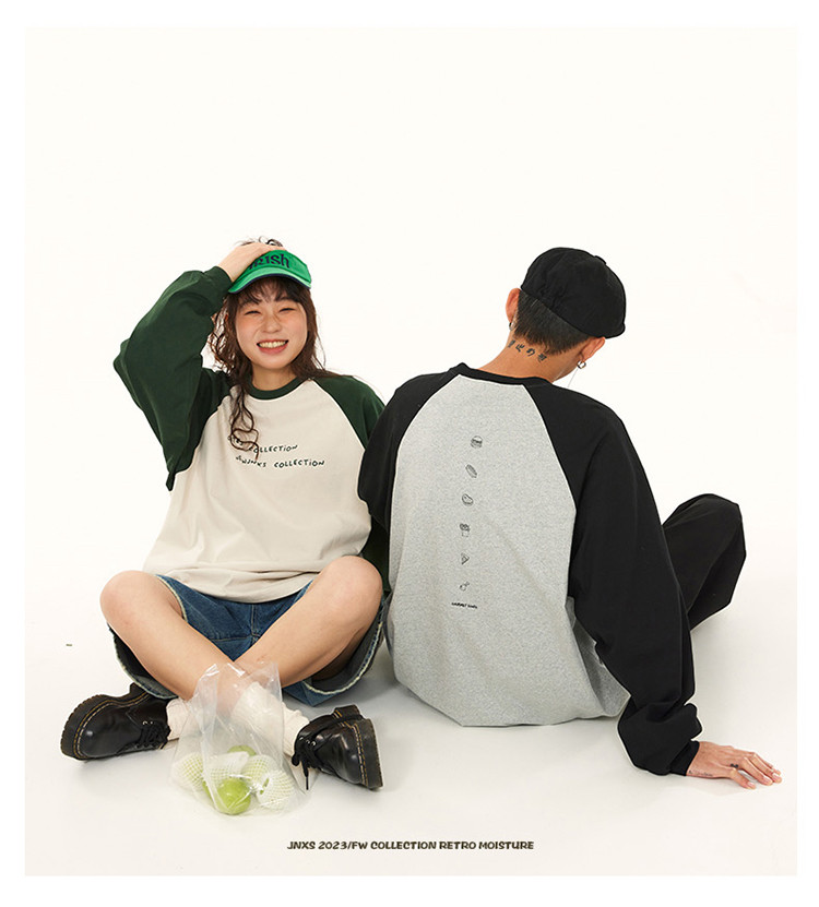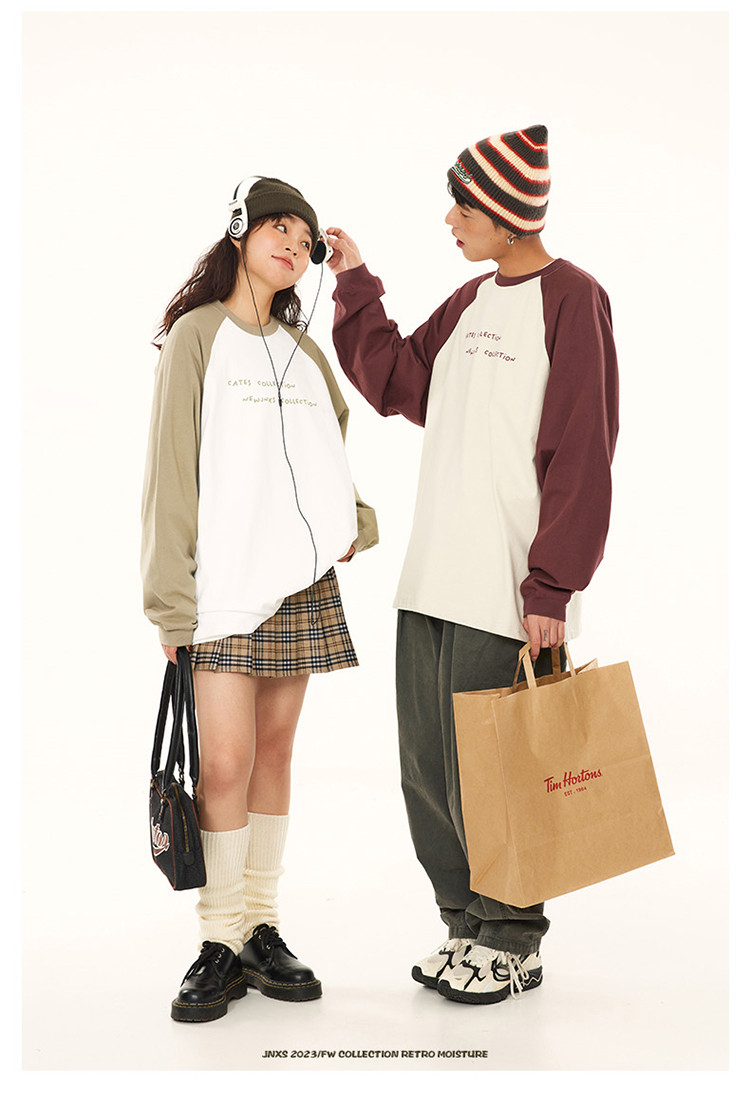 商品名称:JNXS/江南先生日系复古拼接长袖T恤男女春季潮牌情侣打底衫 448017