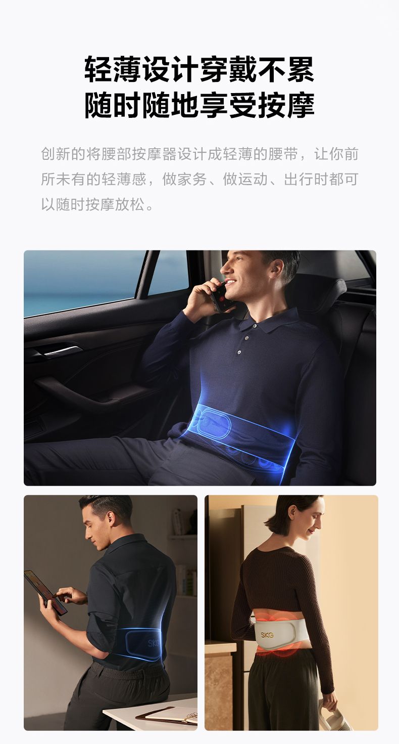skg腰部按摩仪 四区揉捏缓解酸累 智能按摩器腰带可拆洗 送男女友圣诞节生日礼物 W7二代豪华款