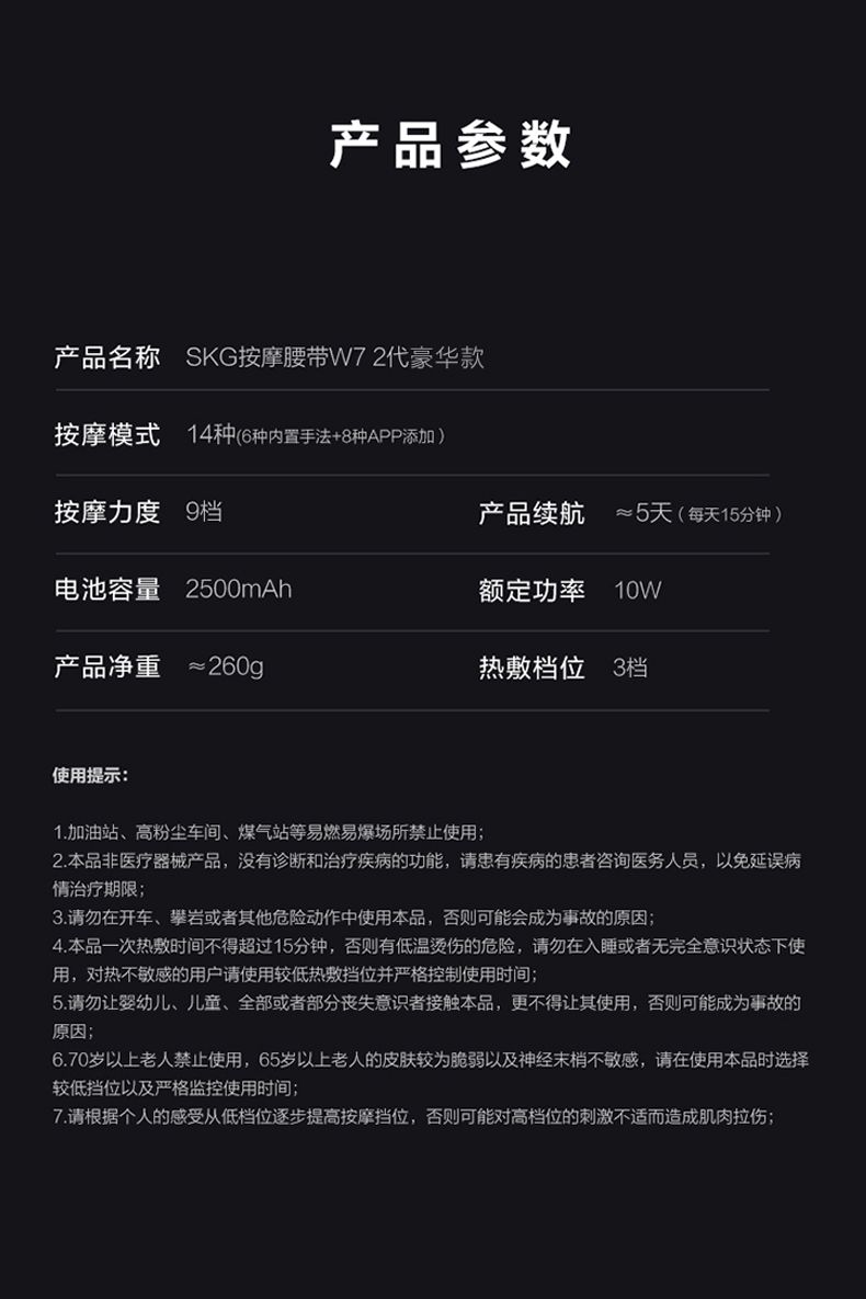 商品名称:skg腰部按摩仪 四区揉捏缓解酸累 智能按摩器腰带可拆洗 送男女友圣诞节生日礼物 W7二代豪华款