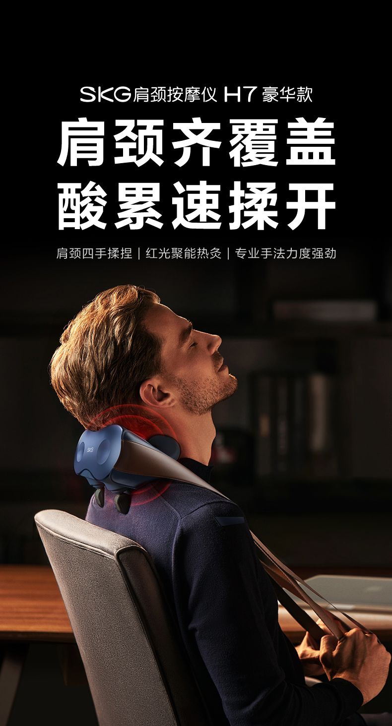 SKG颈椎按摩器按摩仪颈部脖子肩颈护颈仪物理揉捏斜方肌腿腰背部热敷新年圣诞节礼【力度升级多部位揉捏】肩颈按摩仪 H7豪华