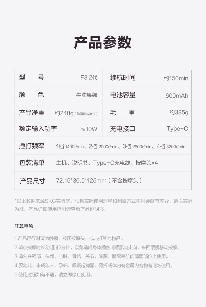 商品名称:SKG筋膜枪F3-2肌肉放松便携按摩仪多功能颈膜枪家用按摩枪按摩器实用礼品送父母男女友老婆